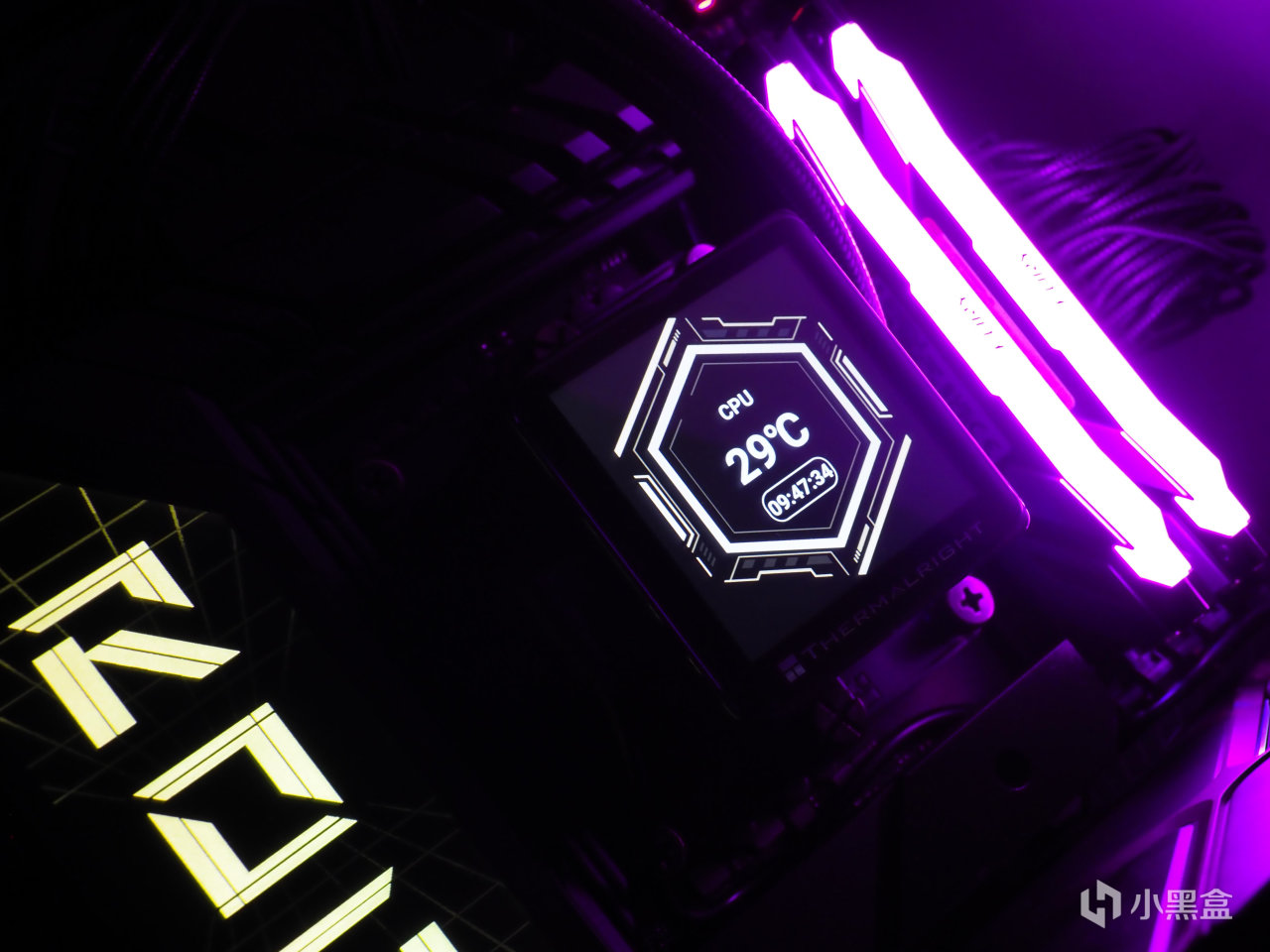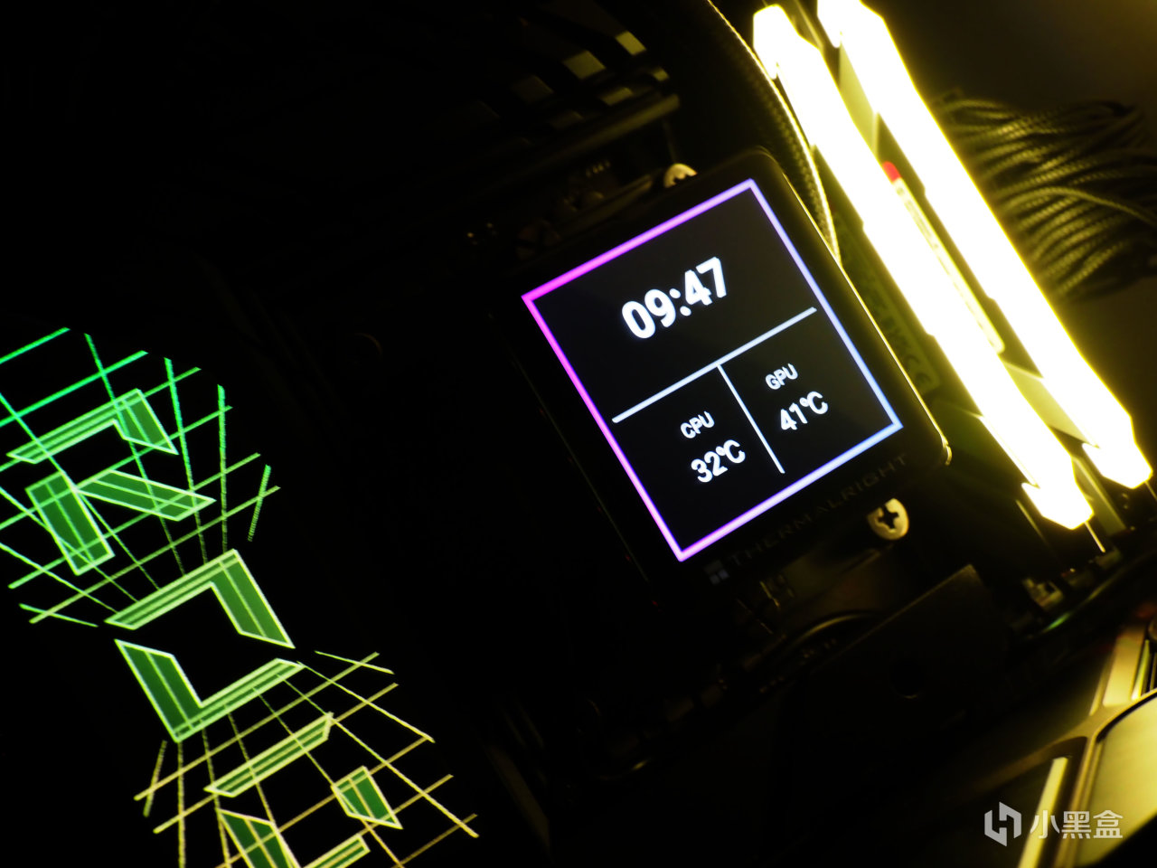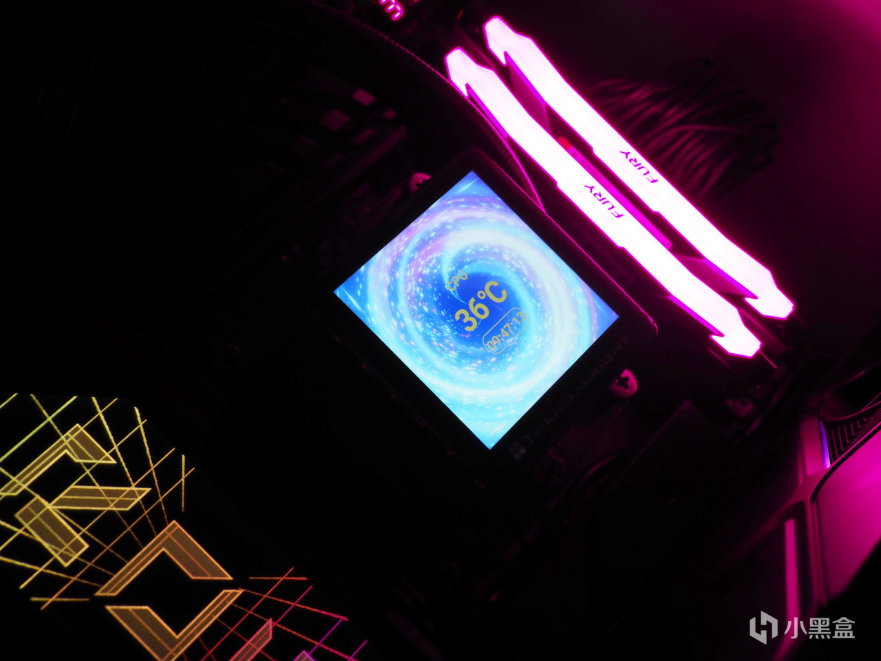 不得不说,利民的这个FV360真的是很好地兼容了“好看”和“性能”,众所周知,带灯的风扇大多不如不带灯的,而FV360用的风扇则取了个巧,在风扇框上加了RGB,而主体依然保持性能取向,而且还有酷炫的冷头LCD屏幕,好评!
