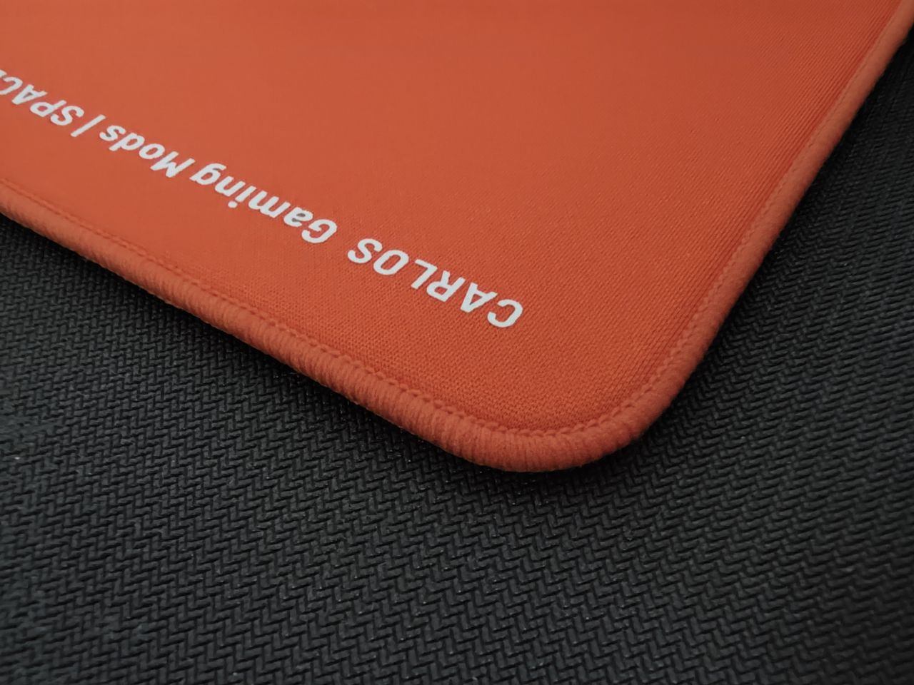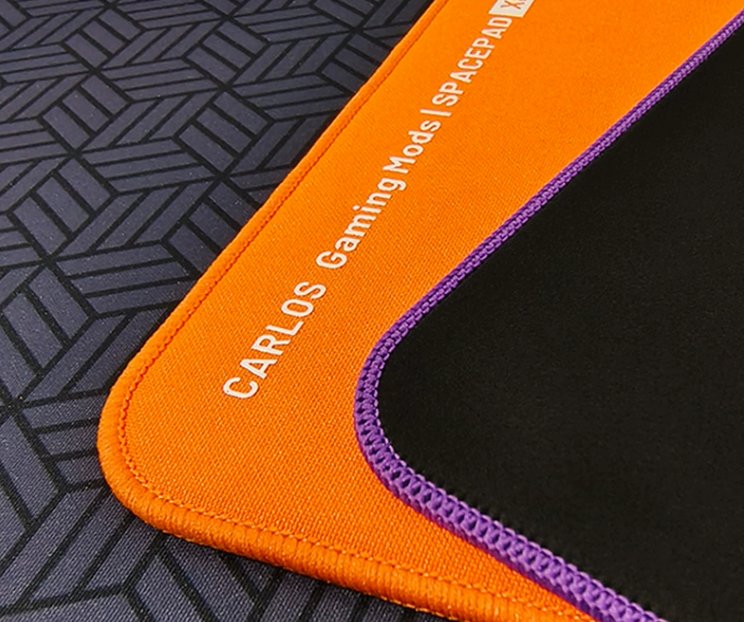 - 面料方面 :卡洛斯、拿坡里兩款鼠標墊面料均爲高定製的面料,染色爲低溫漂染,顏色超級正。Spacepad卡洛斯鼠標墊採用飽滿的橙色配色,面料採用立體斜紋編織工藝,湊近了能看見肉眼可見的針織感編織網,手摸上去有微弱的絨感,刻度感的明顯,鼠標在上面用起來非常順滑,同時又不像玻璃墊那種超級滑,玩家能夠很輕易的把鼠標快速停下來。這種有刻度感又比較中性的手感跟劍匠零的手感比較類似。
