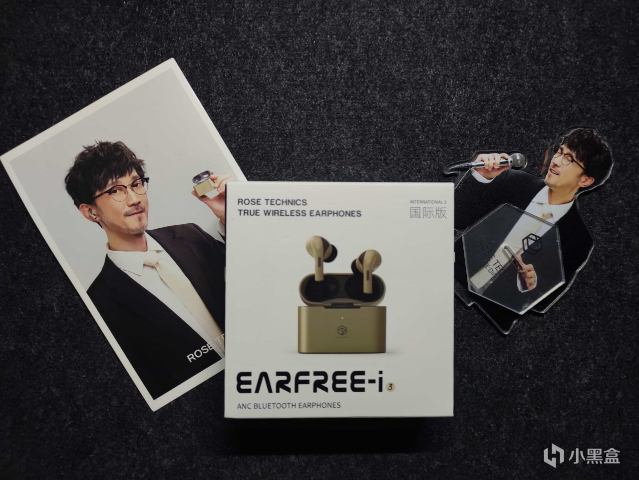 耳机的外包装十分的简约,旁边是赠送的周传雄立牌和宣传卡牌。