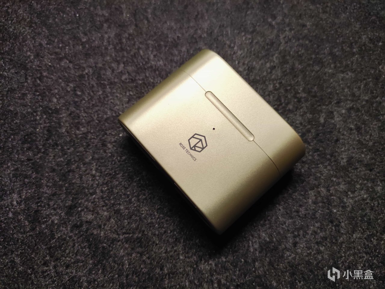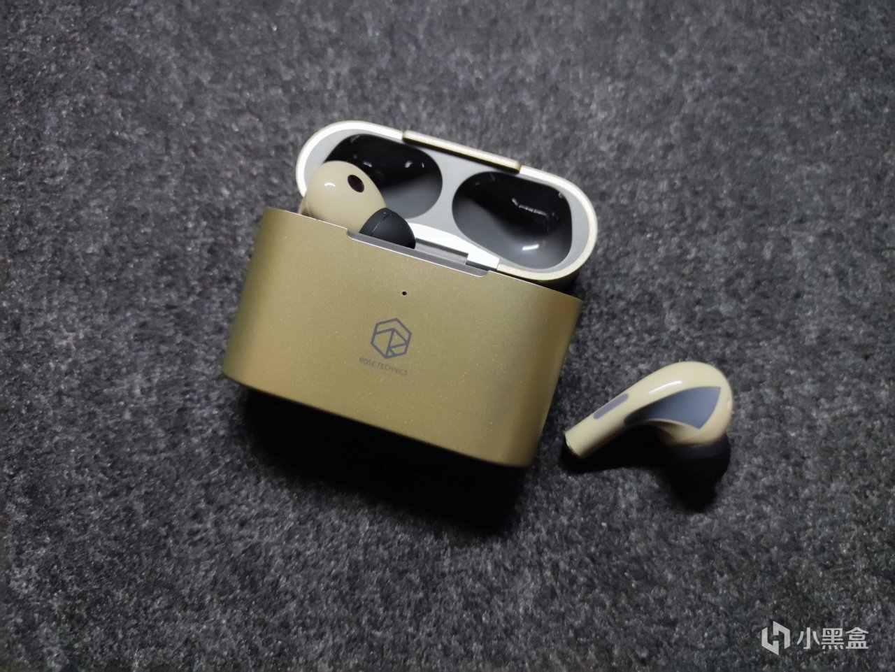我手里的这款是香槟色,耳机收纳盒有种金属质感,做工很不错。