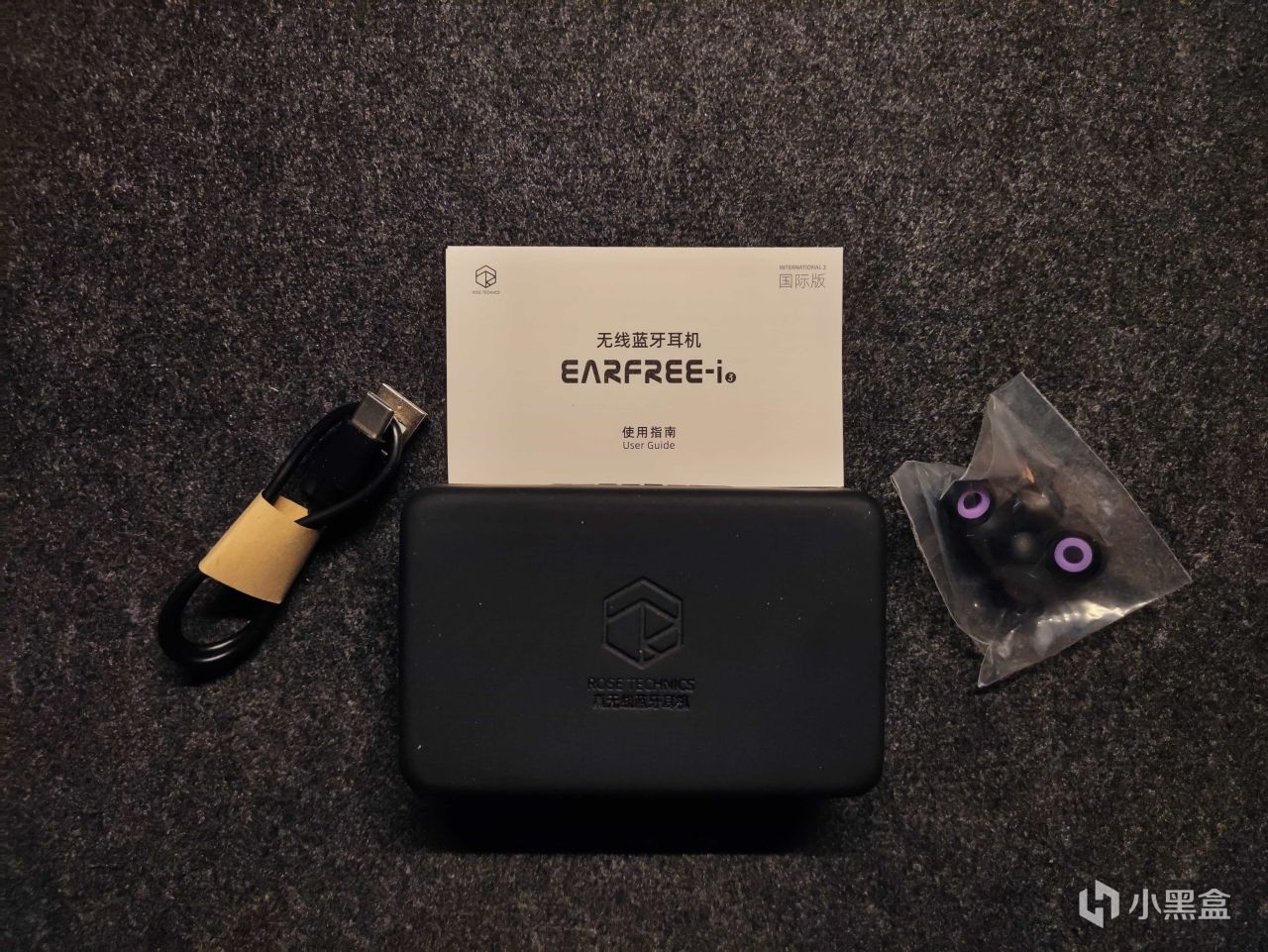 全家福:放耳机的盒子、数据线、说明书、几对赠送的耳套。