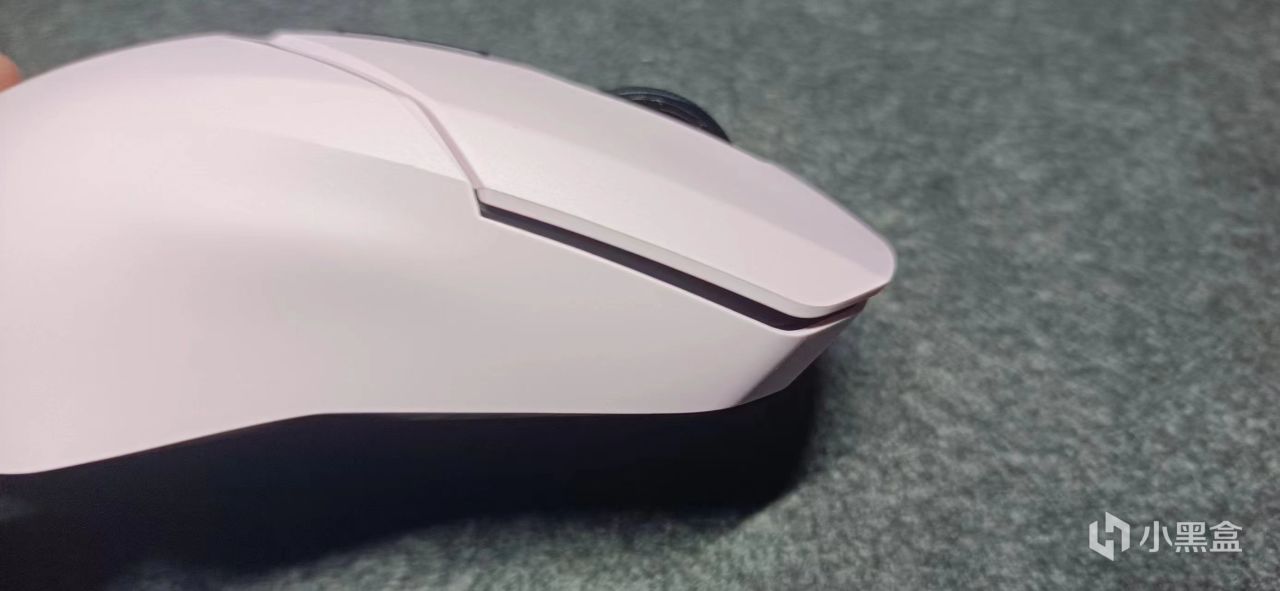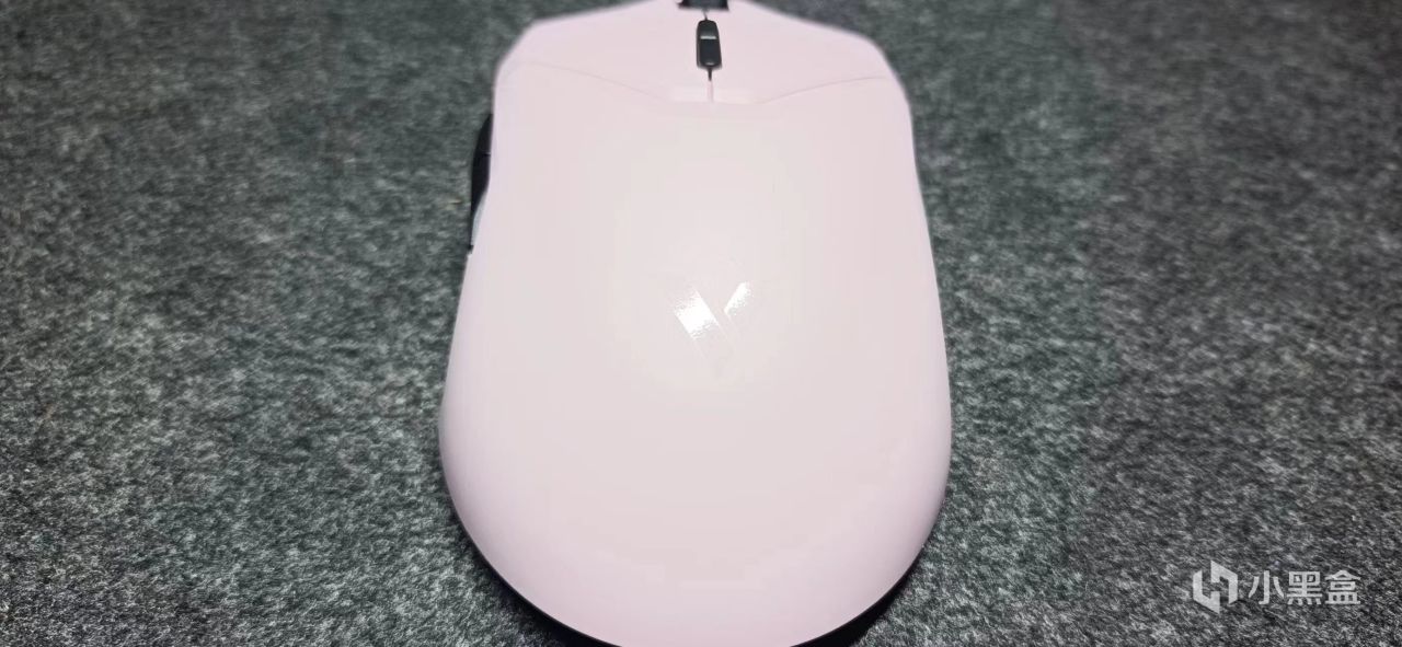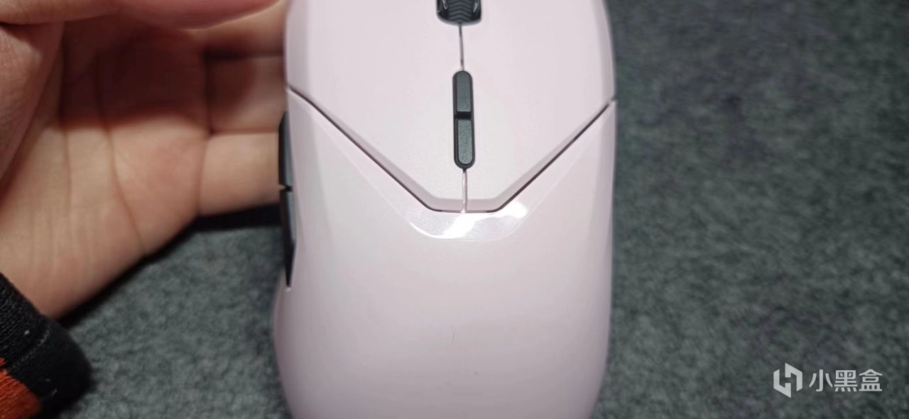 值得一提的是,我这款鼠标是粉红色,雷柏的logo没有进行刻意的打光,而且logo没有rgb灯效,显得更加简洁。手柄在中部按键分界线做了各浅浅的亮面处理,反光更加美观。两侧会有缓冲带凹陷,方便徒手进行携带。