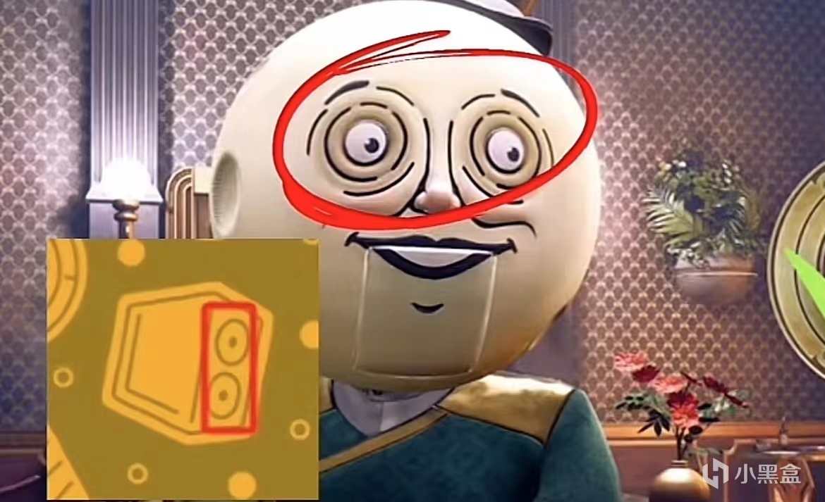遊戲中的標誌代言遨遊宇宙的飛船,操作界面都和線索中的圖案有一定關聯,至於耳機還有聖誕柺杖則是干擾項,看圖片上這個方形的兩個眼睛圖案非常明顯,這個遊戲裏最不缺的就是這種大眼,憑這一個線索就能確定。不僅如此,整個圖片背景還有星星點點的小點綴,直接就擺明了告訴玩家這款遊戲就是太空題材。