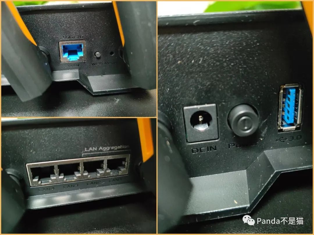 而在网口方面,ax3000提供了一个2.5G的WAN口以及四个千兆的LAN口,其中LAN1与LAN2支持链路聚合。旁边则是USB3.0接口与电源键口和电源键。