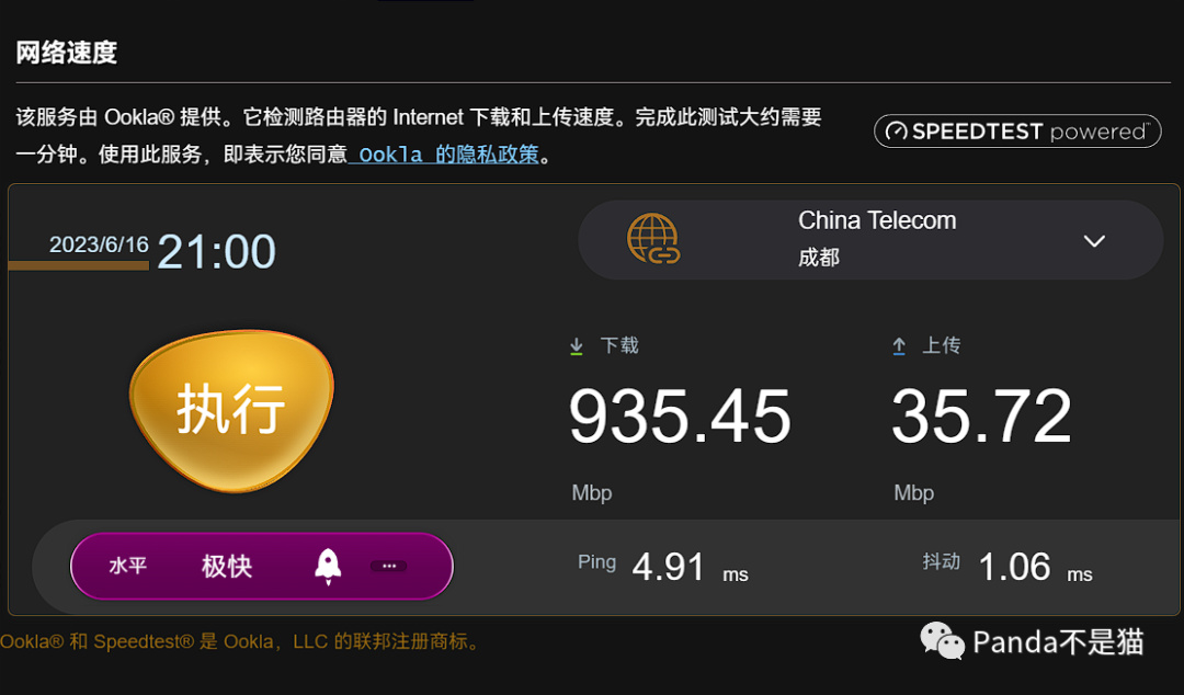 所有设置完之后便是还原老路由的设置了,将NAS的端口以及之前设置的DNS等等信息还原后本次路由器更换就大功告成,最后附上新路由的测速图。