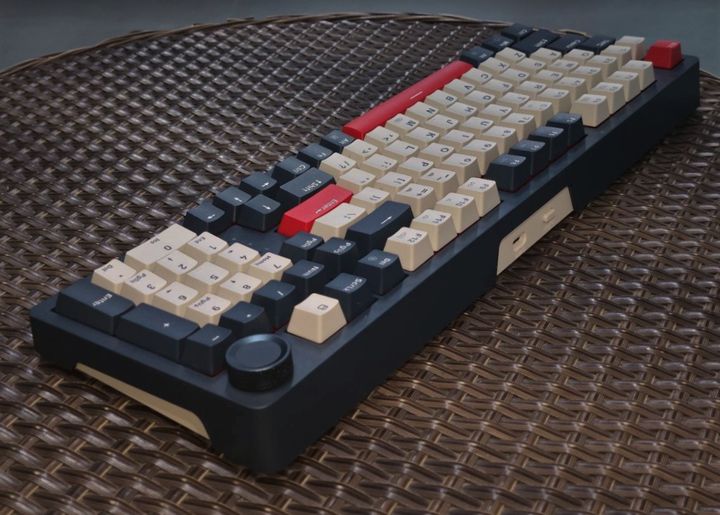 古典韵味的深色机身设计,非常实用的大键2U0键位、PBT双色工艺的键帽、合金质感旋钮、组成了这一把颜值质感在线的 “青龙”,冰凉的机身,刚打开盒子防尘罩仿佛还能闻到出厂机器的冷峻。