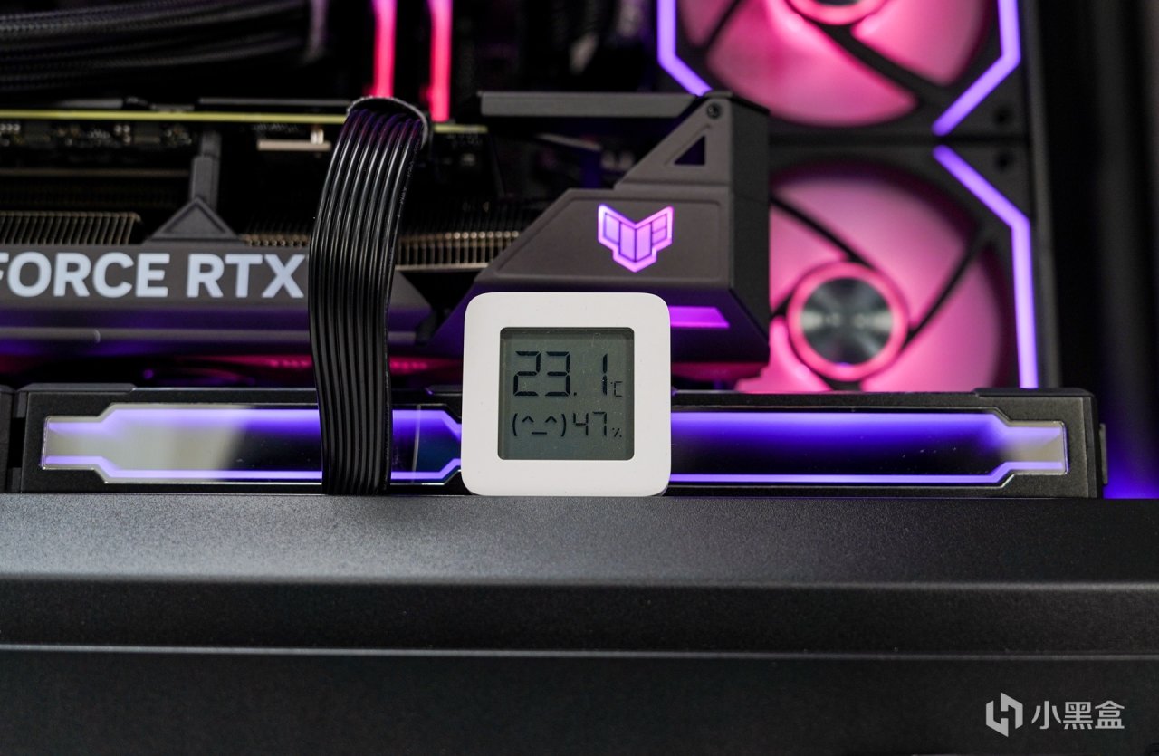 這次使用的TUF RTX4070 012G的溫度表現也還是不錯的,當然了海景房下置的進風散熱位也起到不可忽略的作用,GPU核心溫度62℃,熱點溫度74℃,顯存溫度62℃。