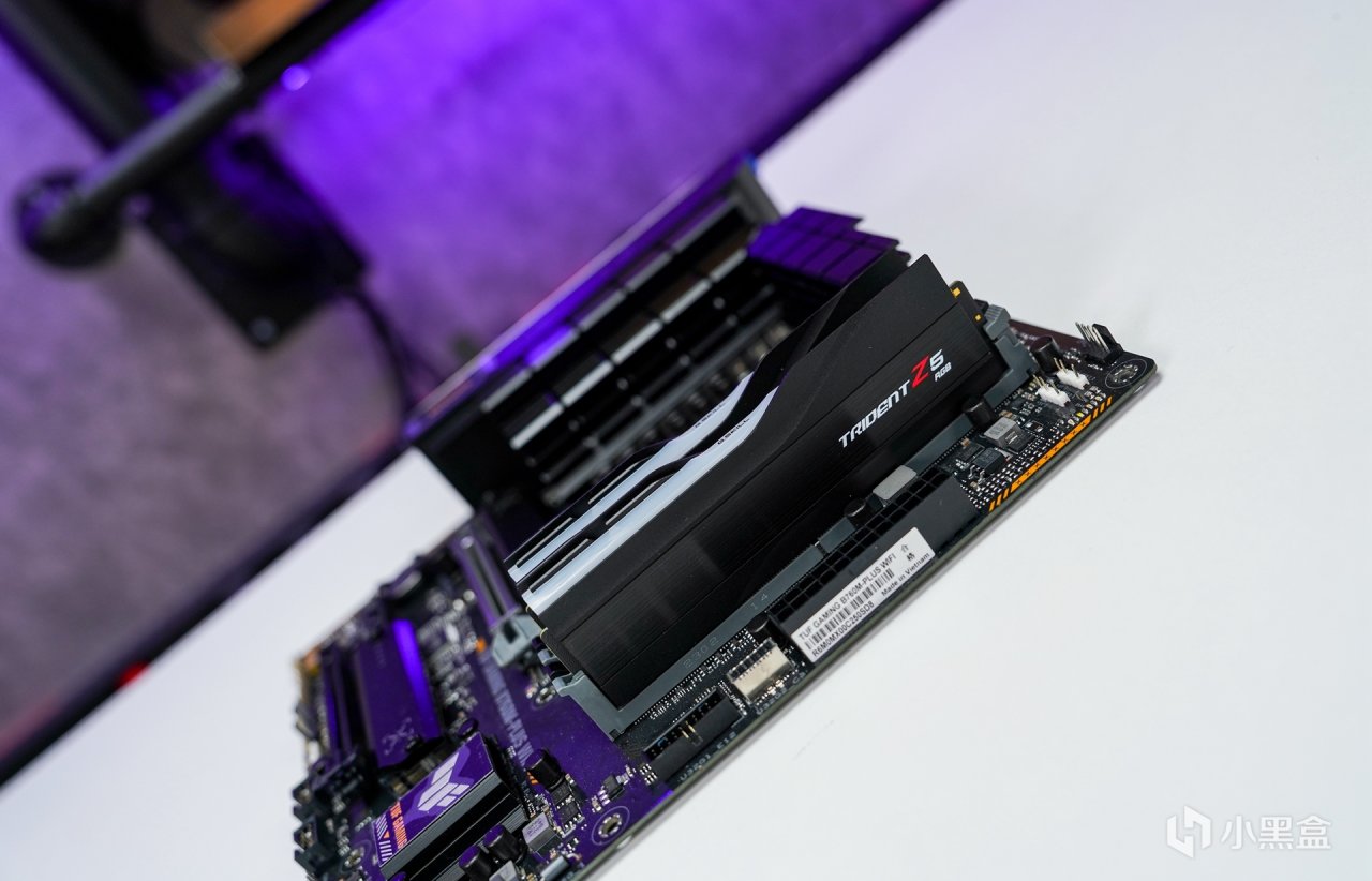 內存方面,則採用芝奇Trident Z5 DDR5 6400 CL32 16*2 32G黯霧黑內存,新版本在外觀造型設計和之前版本相同,也採用全新設計,將超跑元素融入內存散熱片中,內存採用的也是主流的海力士A-DIE顆粒,時序CL32-39-39-39-102。