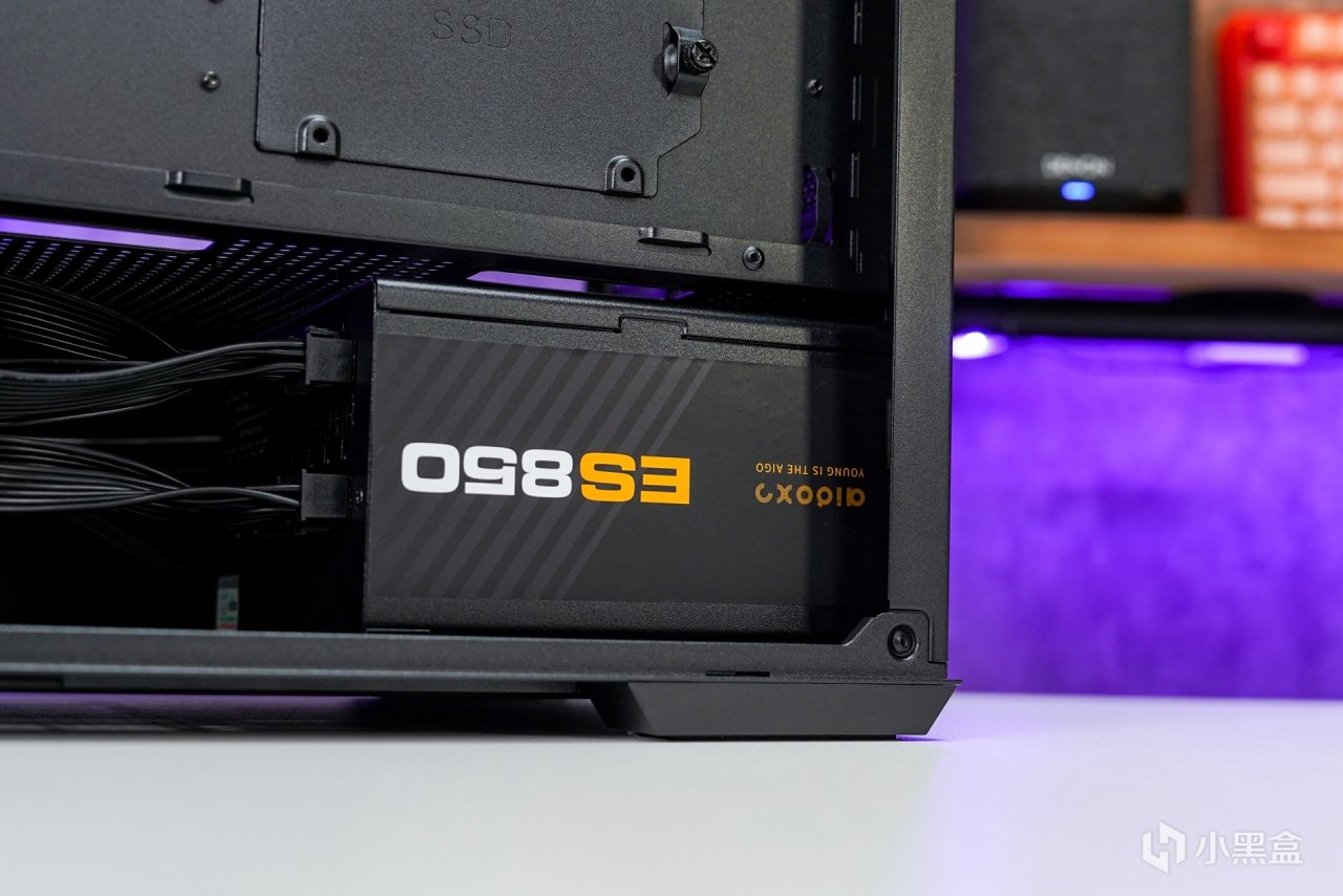 電源使用的是AIGO ES850 ATX3.0款的金牌全模組電源,電源選擇上我個人更關心的是其採用的方案,售後年限和內部用料等這些與電源實際使用更切合的問題。採用的主流的 LLC諧振電路搭配主動式PFC驅動電路、DC-DC純直流低損耗轉換電路打造金牌電源在轉換效率效率,動、靜態測試、12V輸出穩定性等功能上都有出色表現,並且採用了新的原生PCI5.0標準12+4 16 PIN供電接口,搭配附帶的12VHPWR 16 Pin模組線,可以直接爲 PCIe 5.0 系顯卡供電,850W電源最高可以提供 450W 的供電能力。