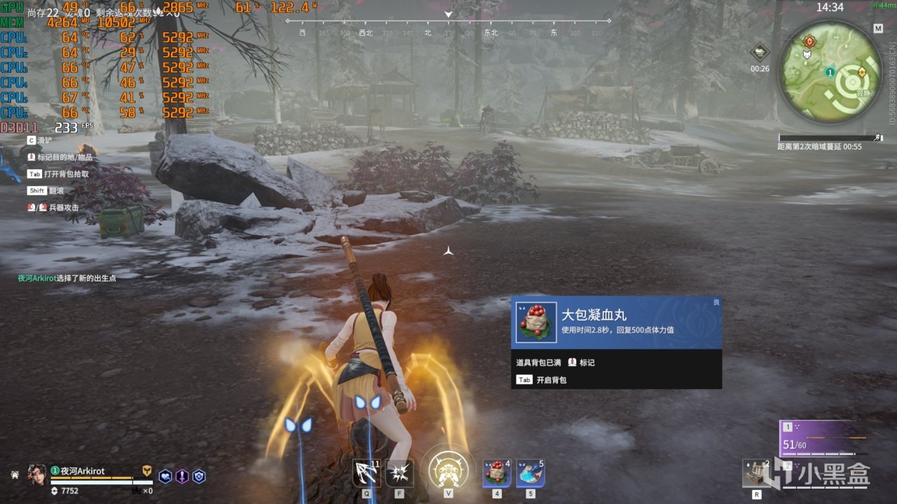 永劫無間---2K高刷顯示器幀數維持在230FPS以上,CPU溫度最高維持在64~67℃,GPU溫度維持在49℃。
