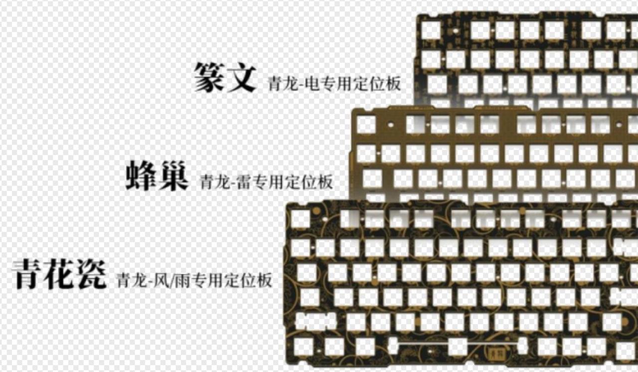 定位板的花样是最丰富的,这块FR4材质定位板的表面居然还设计了图案,而且一共分为青花瓷、蜂巢、篆文三种样式。