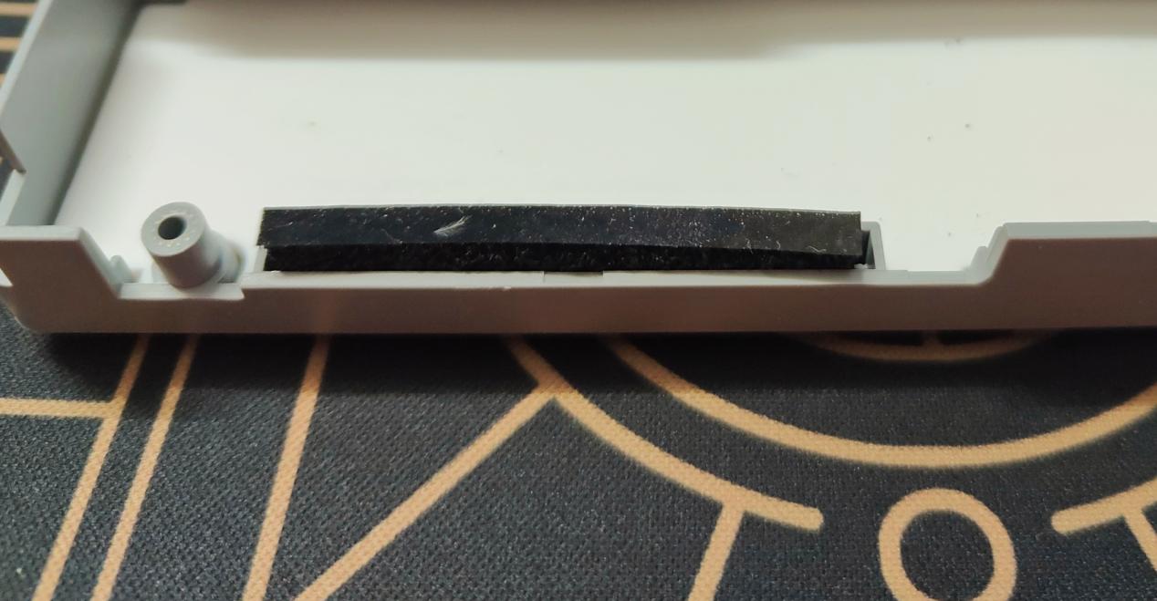 最后在外壳边缘,还有许多这样的海绵条被塞在凹槽当中,应该是为了减轻边缘处的共振,进一步优化声音。不过海绵条在拆卸的过程中会比较容易被带出来,如果能做个粘贴之类的固定处理就更好了