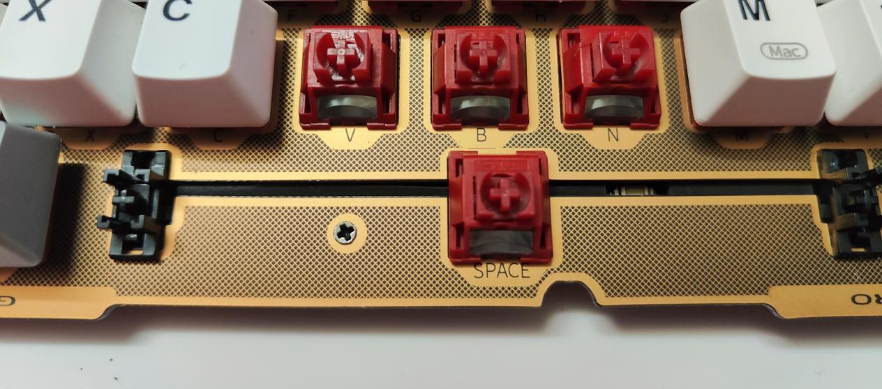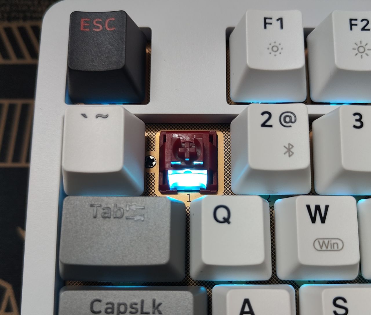 我平常使用的都是更换了28gf弹簧的肌无力轴,不过这烈焰红轴体验下来也没有我想象中那么累手,可能就是因为减轻触底,增加回弹的关系,对于一个加长了弹簧的轴体来说稳定性也不错。