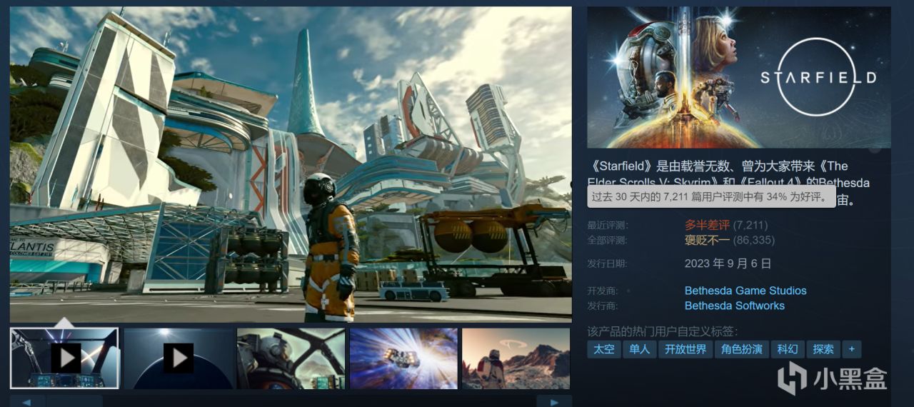 根据过去30天内玩家在Steam上的评价,《星空》仅获得了34%的好评。尽管Bethesda发布了雄心勃勃的《星空》发展路线图,但这并未改善游戏目前的公众评价。