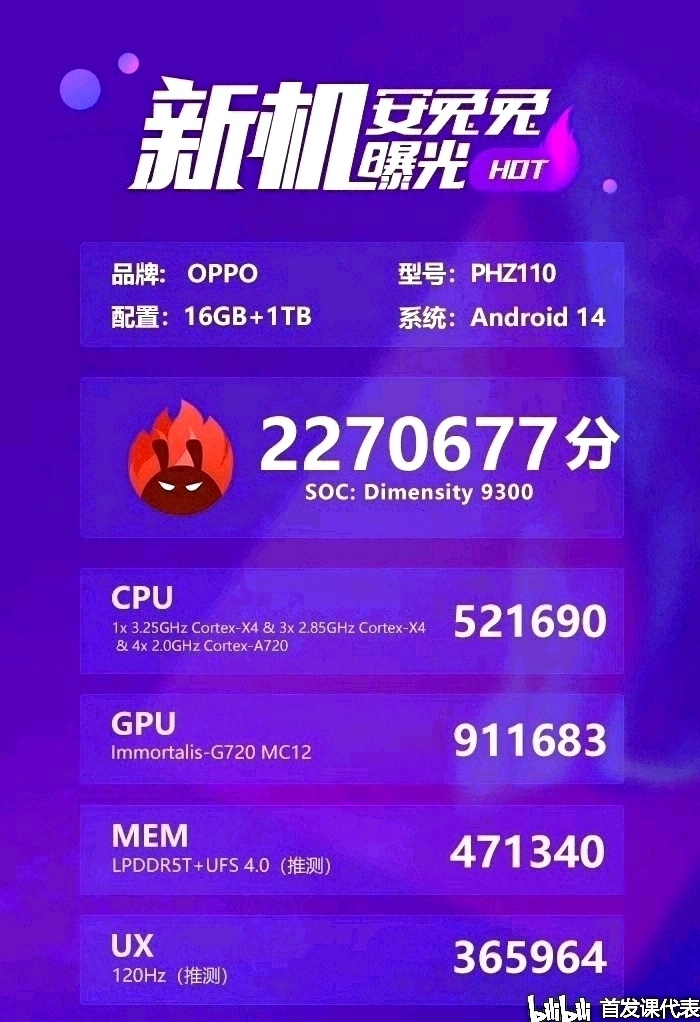◆ 安兔兔官方,表示在其后台中发现了一款搭载天玑 9300 的 OPPO 新机,其型号为 PHZ110(OPPOFind X7)。