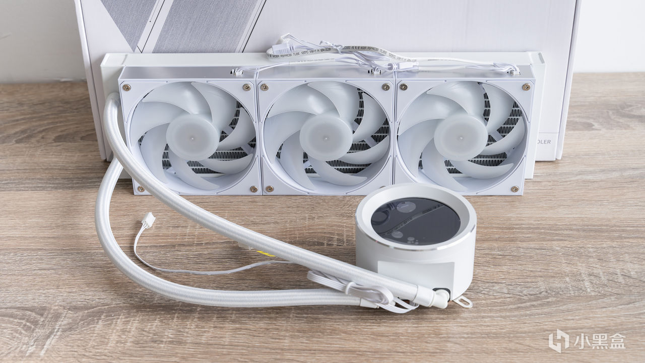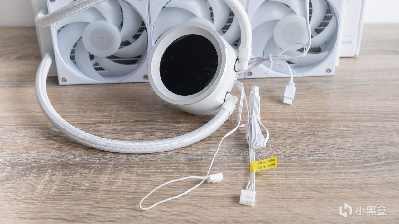 先马XW360W PLUS标配三枚XT128风扇,转速可达到2500RPM±10%,风扇出厂已经预装在冷排上,线材也全部串联好,玩家实际装机时只要连接一条线即可。