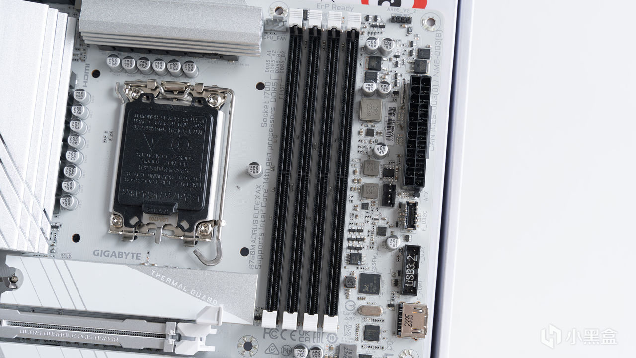 B760M冰雕X外观设计相当漂亮,包括散热装甲、装饰件以及PCB部分均采用白色覆盖,仅剩下内存插槽以及一些I/O接口是黑色,当然光把纯白作为卖点的话,自然是远远不够的,毕竟千元以下也有不少纯白主板可以选择,所以B760M冰雕X并不是单纯的花瓶,它的各种强劲性能之处尽在细节之处。