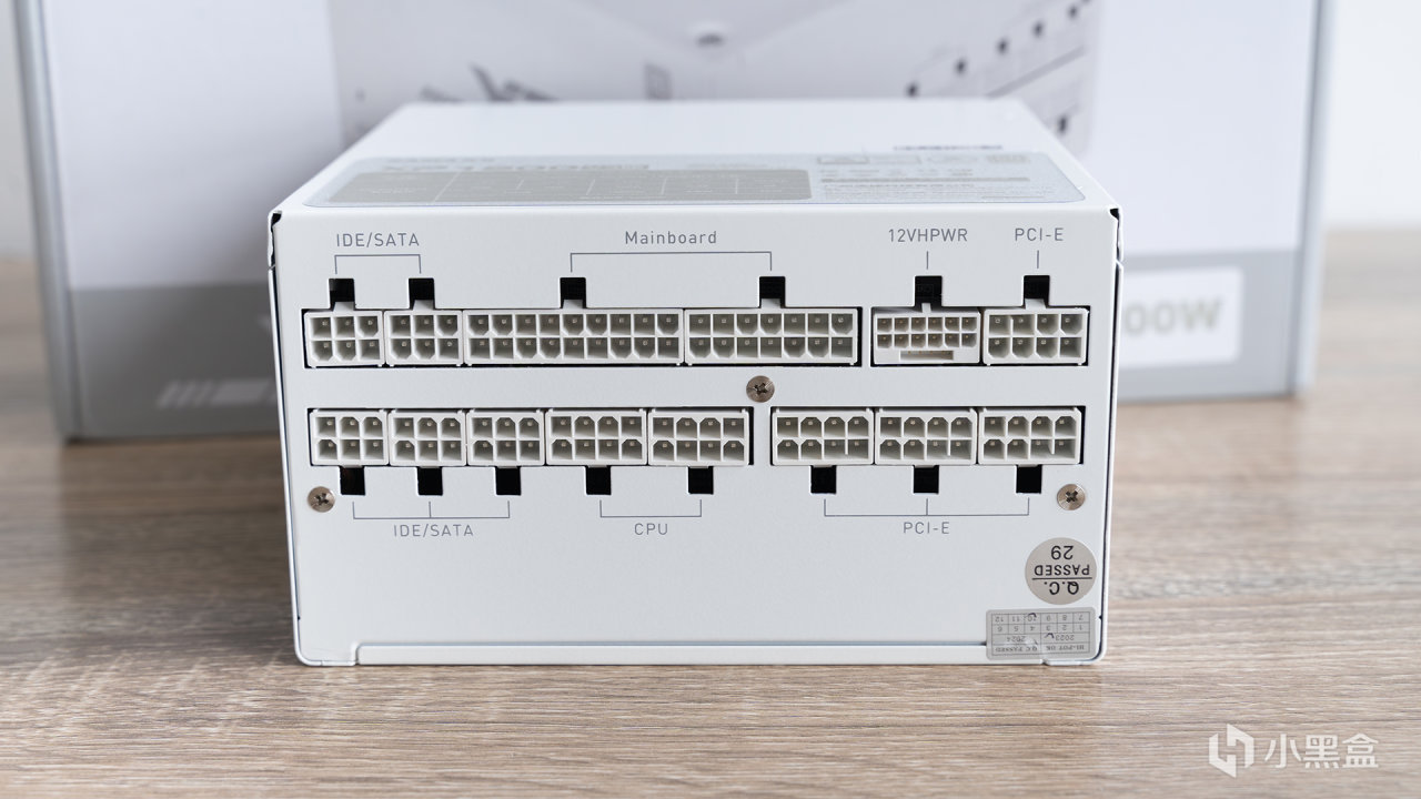 电源拥有全模组接口,每个分区都有明显的标识,包括两个CPU、五个PCIE、原生12VHPWR、接口、24pin供电以及五个MOLEX接口,接口相当丰富,果然是1200W大功率的配置。值得一提的是,接口本身也做了白色化处理,保持视觉上的一致性。