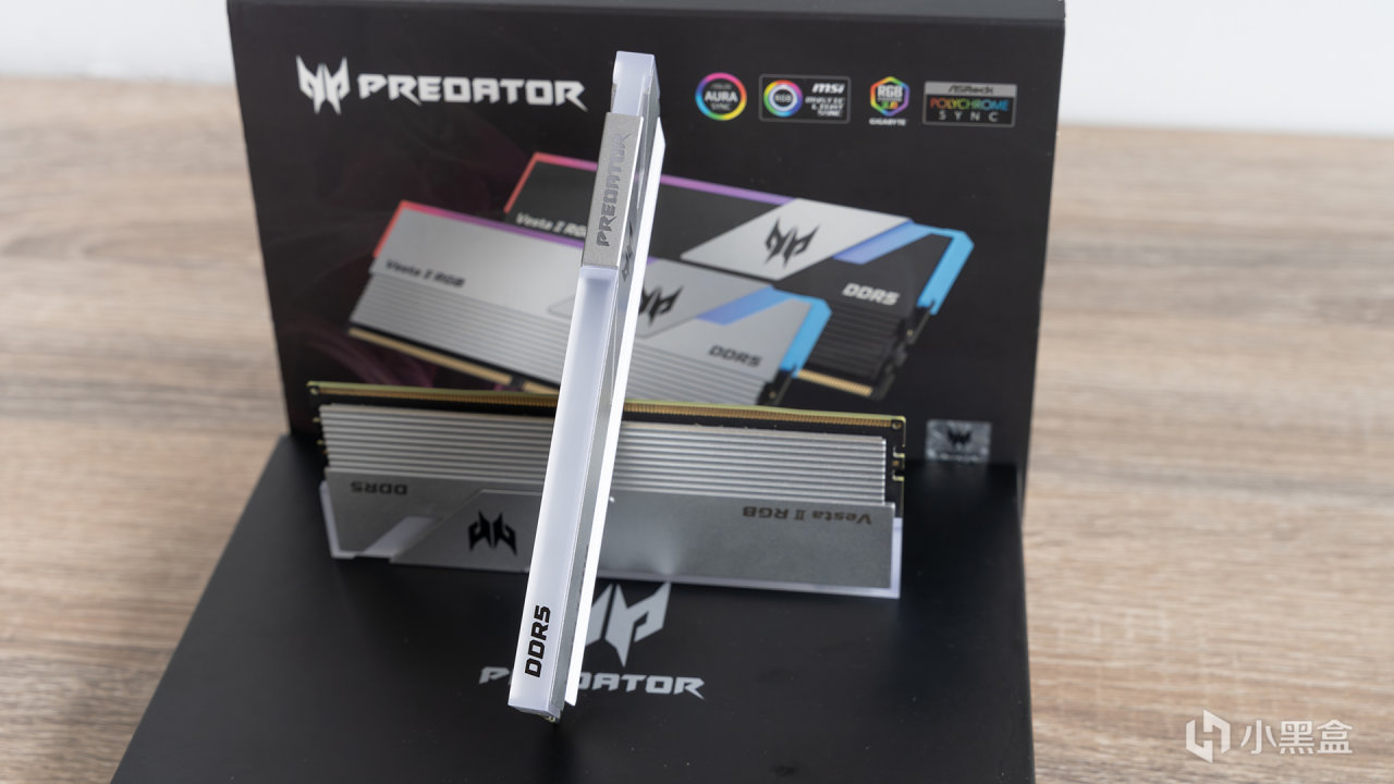 内存顶部覆盖有RGB导光层,表面有PREDATOR和DDR5 LOGO加持,RGB导光层有8颗独立灯珠加持,支持1680万色彩,兼容四大主板灯光调控软件。