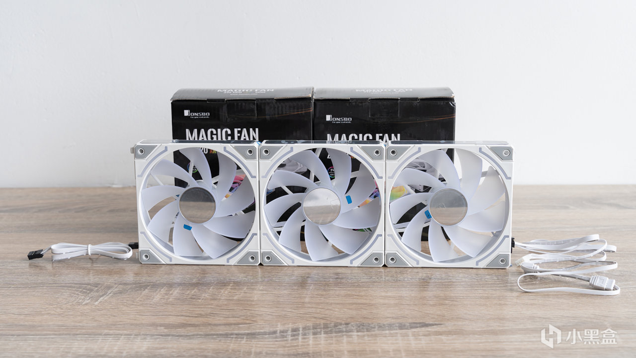 与机箱配套的风扇是乔思伯ZH-120反向ARGB三联包*2,最大的卖点就是其安装便利性,相邻的风扇可以直接通过之间卡扣和触点直接拼接,而相近的风扇则通过一根线就能搞定供电,并且这个三联包风扇价格也比较亲民,适合性价比玩家。