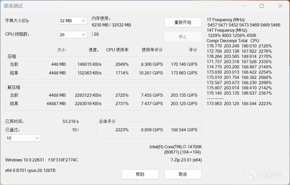 XMP配置Vesta II RGB DDR5 6600C34-40-40-105,D5黑科技关闭7-ZIP基准测试