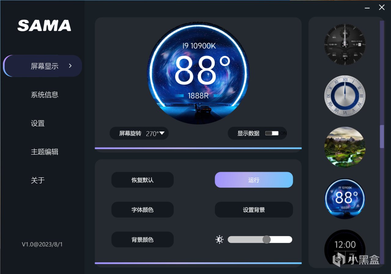 先马XW360W PLUS可通过自家的SamaMonitor软件调节屏幕效果,预设提供了超过30种主题效果可选,而且在此基础上可以自定义字体颜色、背景颜色、调节亮度等参数,如果对预设主题不满意,也可以对主题进行编辑,很全面的体验。