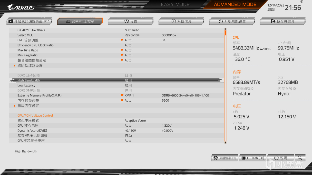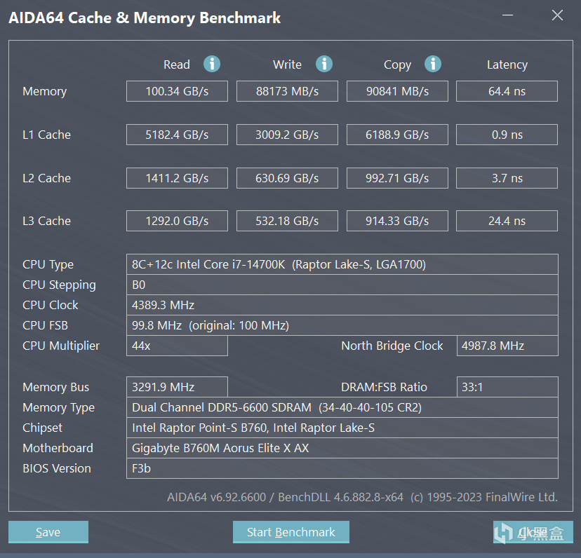 XMP配置Vesta II RGB DDR5 6600C34-40-40-105,D5黑科技开启AIDA64内存和缓存测试