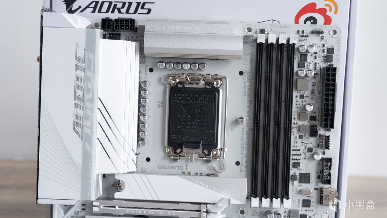 主板外包装采用技嘉标志性的素描雕头+纯白背景设计,B760M冰雕X还是WBG 战队特约的电竞主板,右上角是微博的LOGO,右下角则是标注4年免费质保的售后服务。