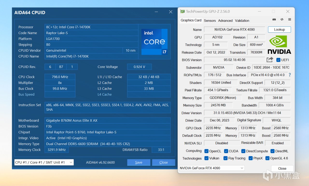 在BIOS中先开启XMP配置和Resizable BAR技术,然后再进入系统测试,本次操作系统是最新Windows 11 23H2,搭载NVIDIA最新显卡驱动546.33 WHQL,整机的配置框架如上图所示。