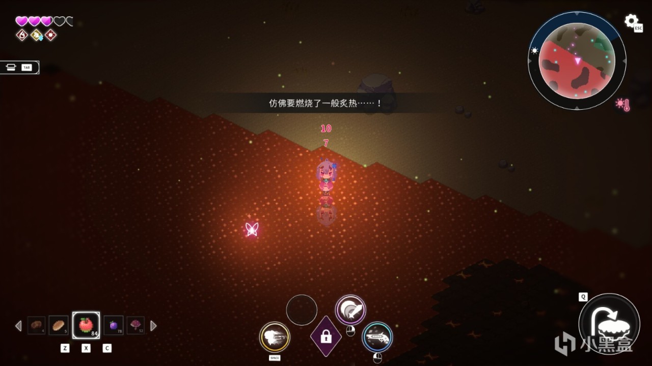 由於本作的生命值機制採用了最經典紅心型計數而非血條,所以生命值一旦減少,在前期生命值上限較低的情況下很快就會死亡。沙漠地形也是類似的,因爲沙漠也是高溫地區,但由於晝夜系統存在,晚上的沙漠氣溫不高,因此我們在夜晚進入沙漠時不會持續掉血,這個設計還是挺合理的。我們可以在世界中探索來尋找解鎖設施的材料,在我們回到天空島之後可以解鎖一些抵消地形DEBUFF的設施,增加我們的水面防滑屬性,或者耐寒耐熱屬性,這樣我們在中後期就可以去探索那些前期不便進入的地區了。