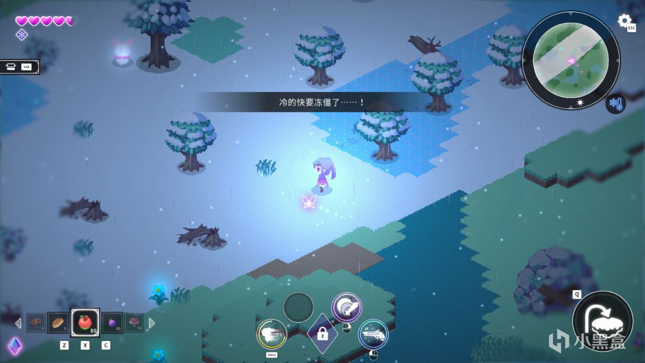 每個區域都會有獨特的動植物生態系統,我們可以通過攻擊的方式採集資源和戰鬥,這種採集資源和戰鬥是同一套動作系統的設計又讓本作的上手門檻變得更加友好了。更重要的是,本作的戰鬥一共四個按鍵,一個閃避,一個技能,另外兩個就是近戰普攻和遠程射擊,雖然這倆在遊戲中也算作是技能,但實際上大多數時候我們只需要掌握好走位,躲避怪物們的攻擊,然後使用遠程射擊或者近戰平A就可以應付幾乎所有的戰鬥了,因此本作的戰鬥系統設計可以說是極簡風格,即使是手殘玩家也能掌握。