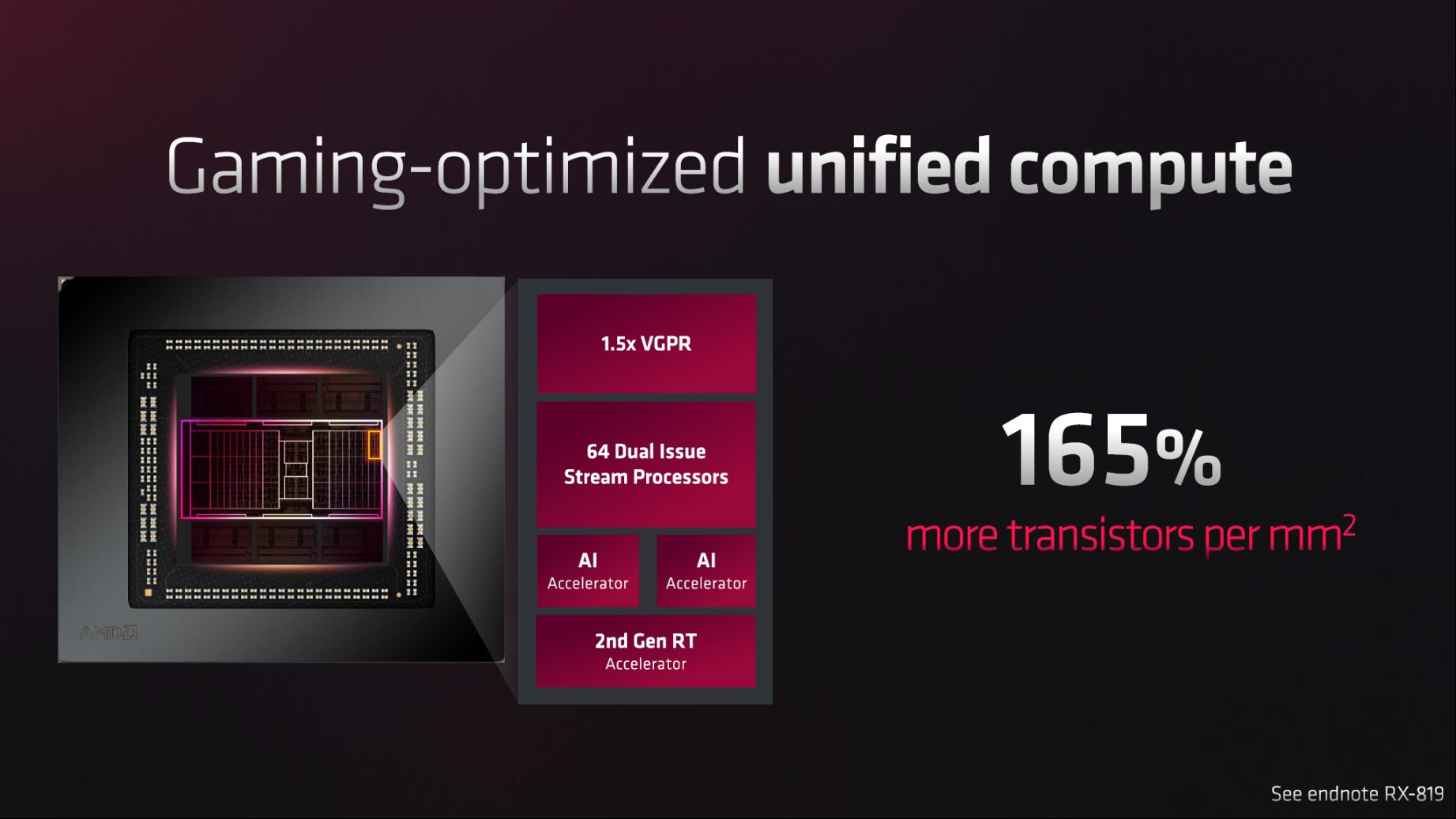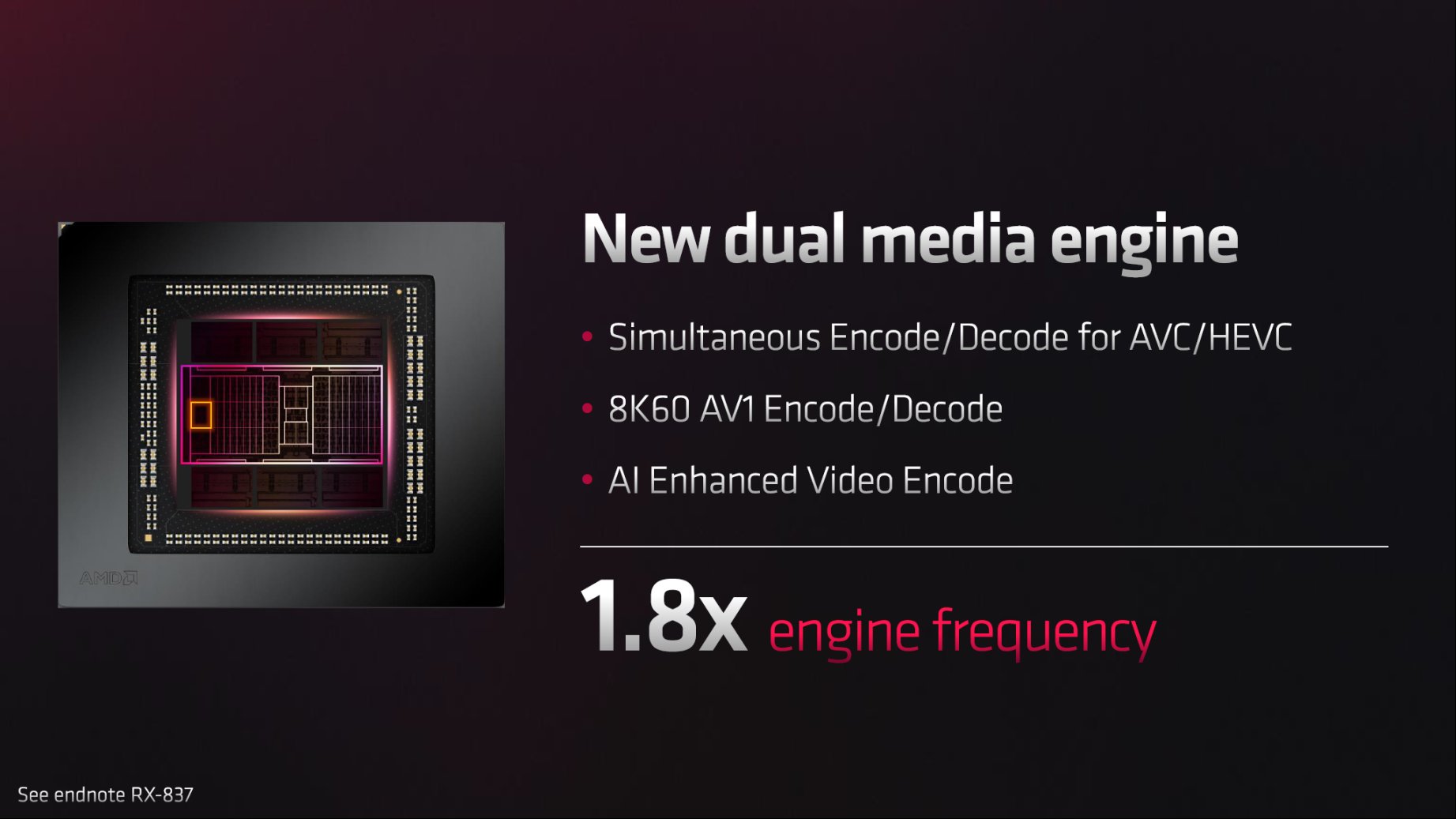 这项技术的具体细节有待公布,但从内部结构来看,加入的 AI 单元应该就是为这项技术准备的,引入和 DLSS3 同样的 AI 补帧功能。(不知道能不能重现老A卡的视频补帧功能,可太馋了)
