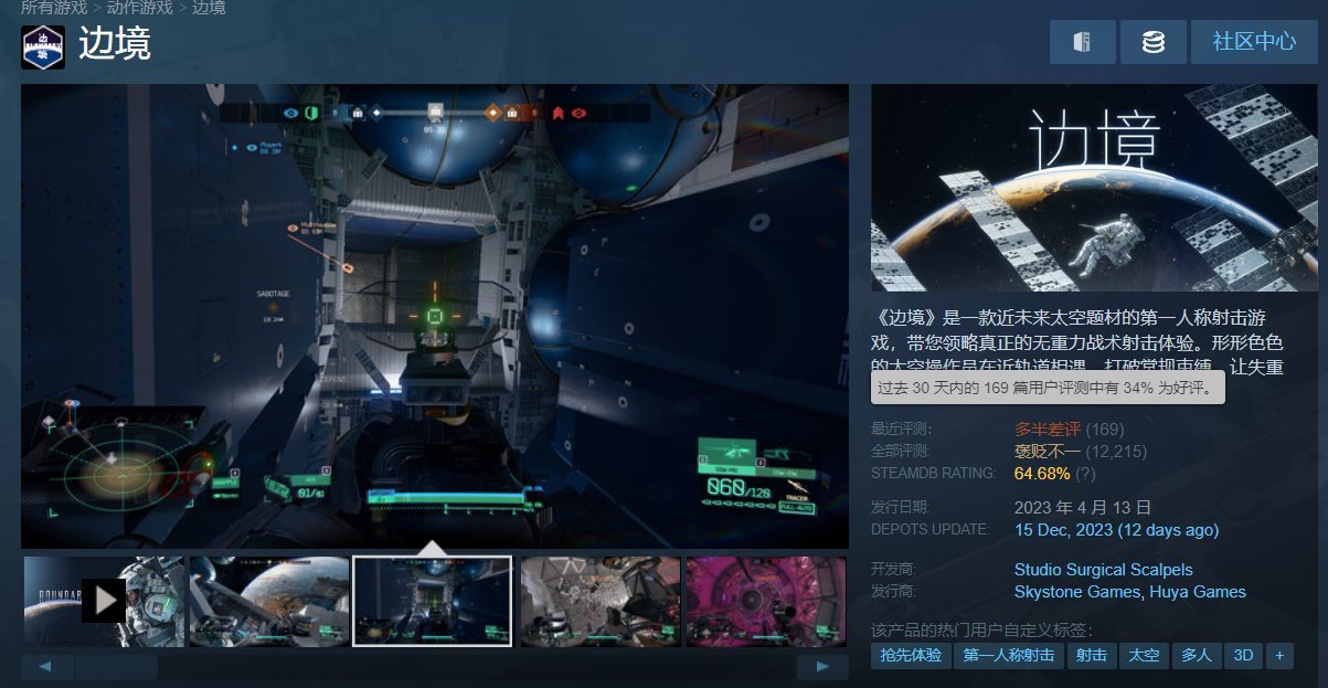 目前steam最近评测为34%好评,为多半差评,总好评为66%的褒贬不一。