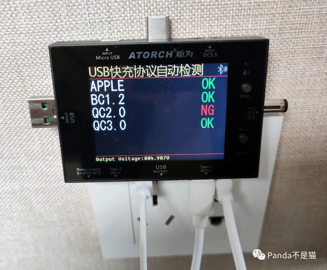 拿到新“玩具”自然是要测试一下了,首先熊猫便选择了家里的墙面USB接口。你们要是要装房子,我觉得也可以向熊猫这样在客厅的沙发后面的墙设计这样的接口,这样家里来客很是方便,只需要有线就可以解决充电问题。