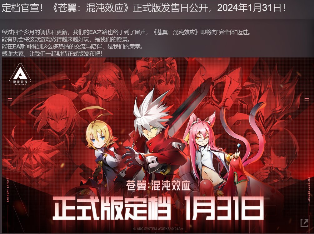 定档官宣!《苍翼:混沌效应》正式版发售日公开,2024年1月31日!