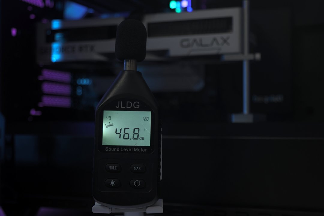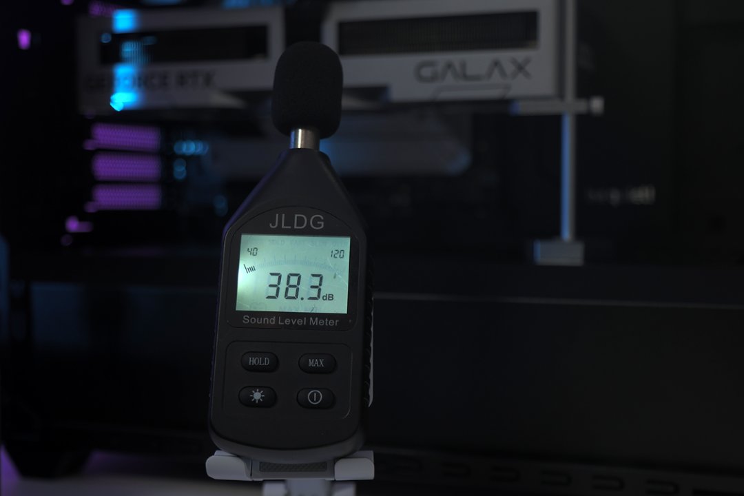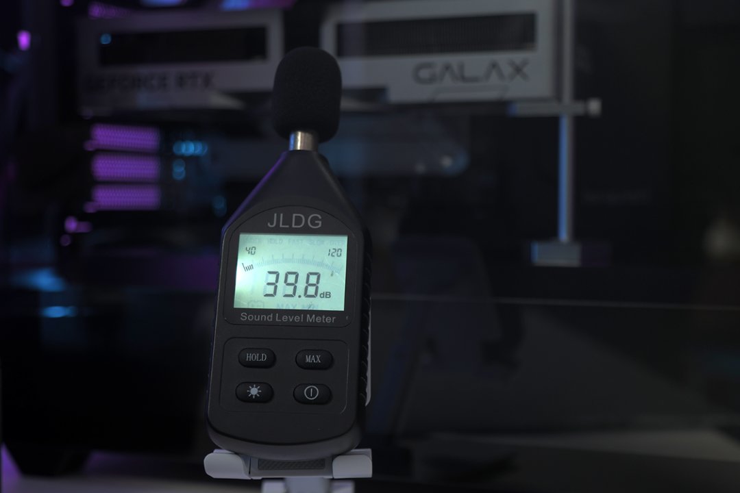盖上机箱侧板时,机箱附近噪音为39分贝左右;