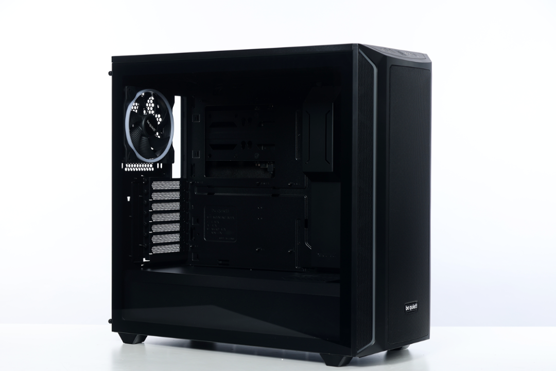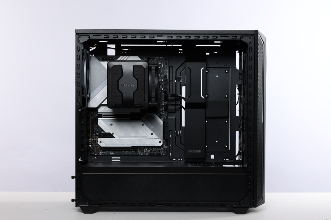 风冷顶盖是一块密布散热网孔的全金属材质磁吸面板,中间位置熟悉的be quite!LOGO非常打眼。