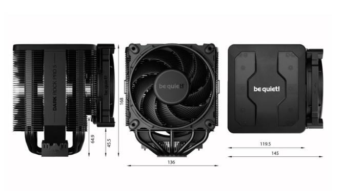 跟咱常见的笨重大个儿双塔不同,Dark RockPro 5体积明显更小,三围:145*136*168mm,纯黑的配色,低调但是质感表现优秀。