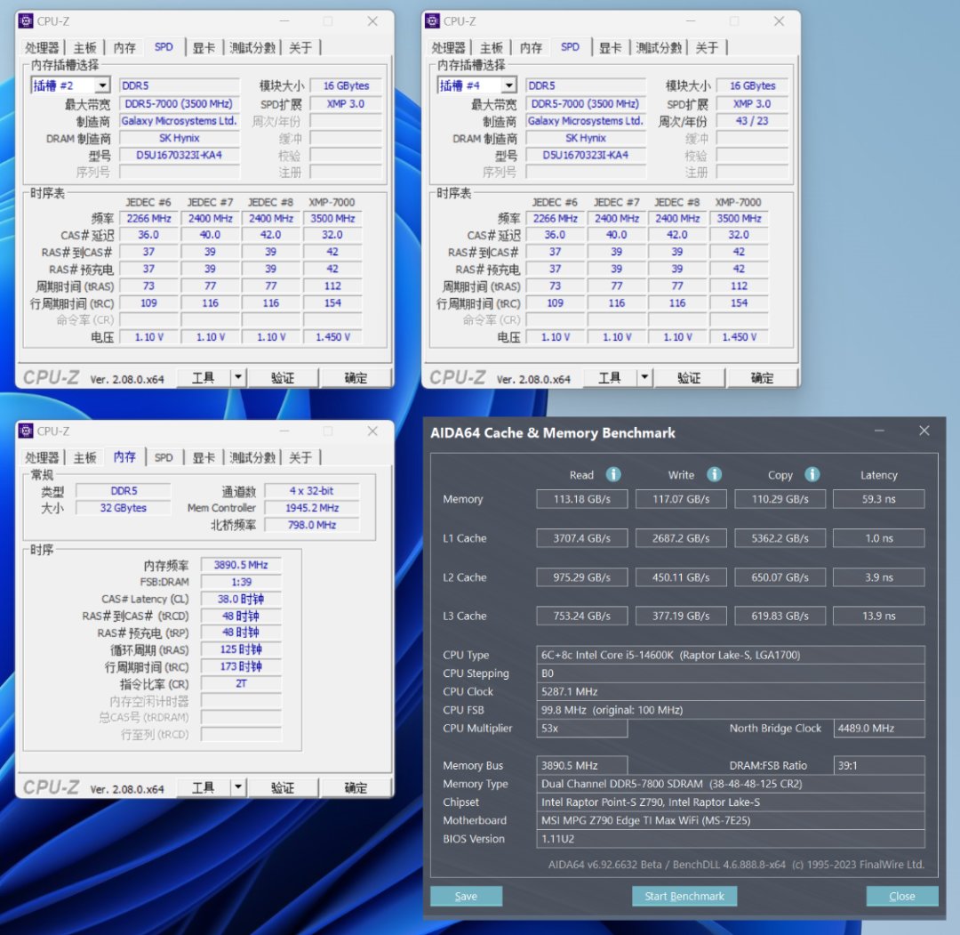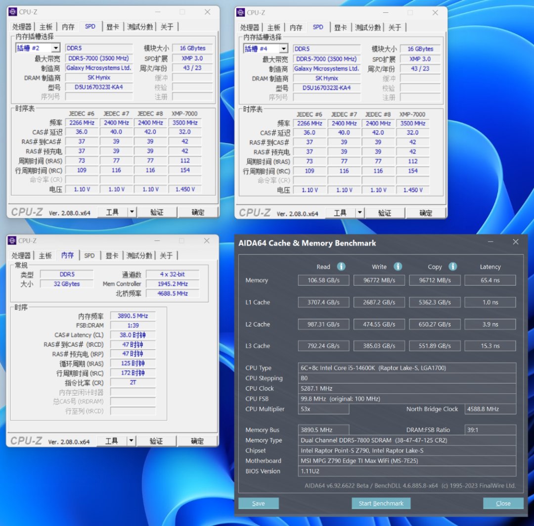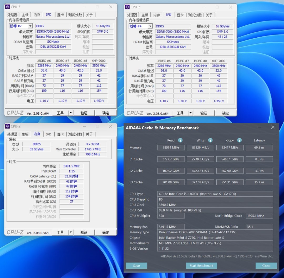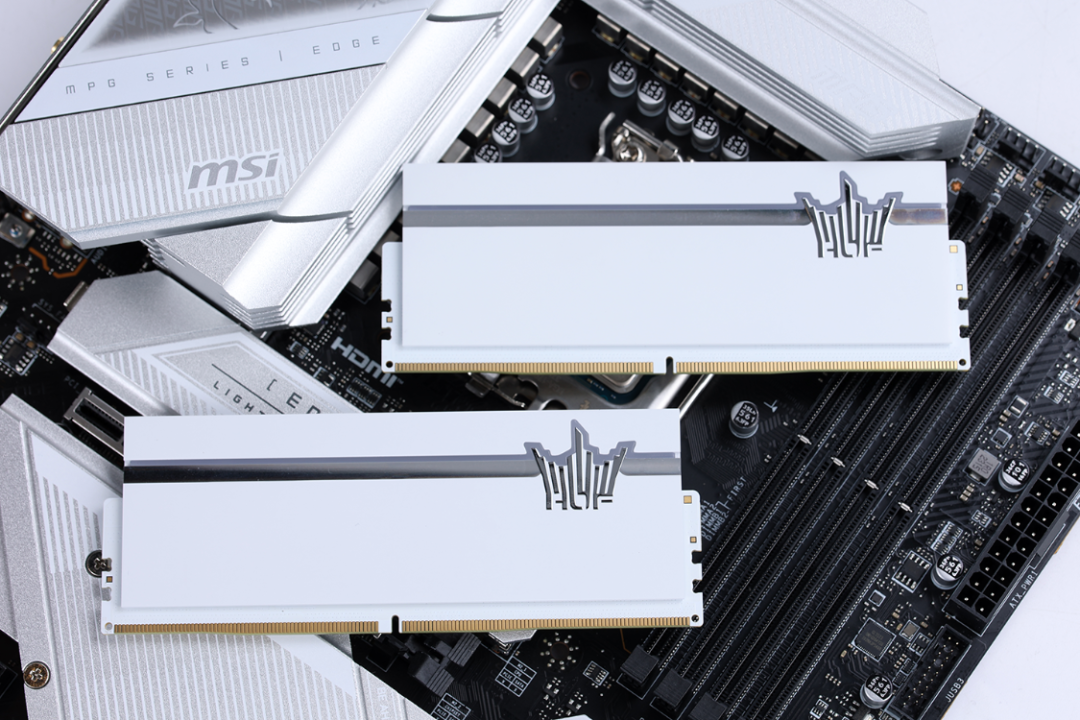 内存性能,白嫖重要,底子也同样重要。今儿装机使用的是名人堂 HOF Pro D5-7000MHz 16G*2内存,金属电泳白工艺处理的白色散热马甲搭配高光处理的银色切面,将颜值与质感直接拉满。海力士ADIE颗粒的加持下,超频性能也有保障。