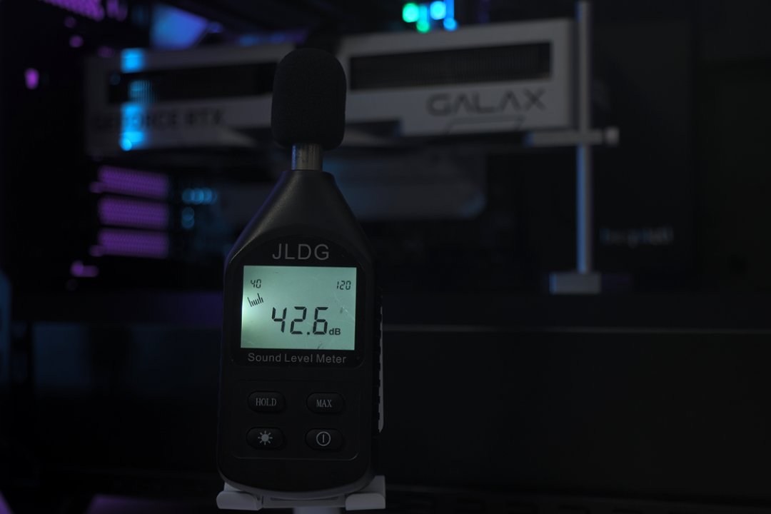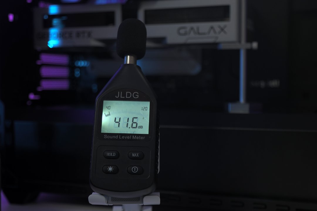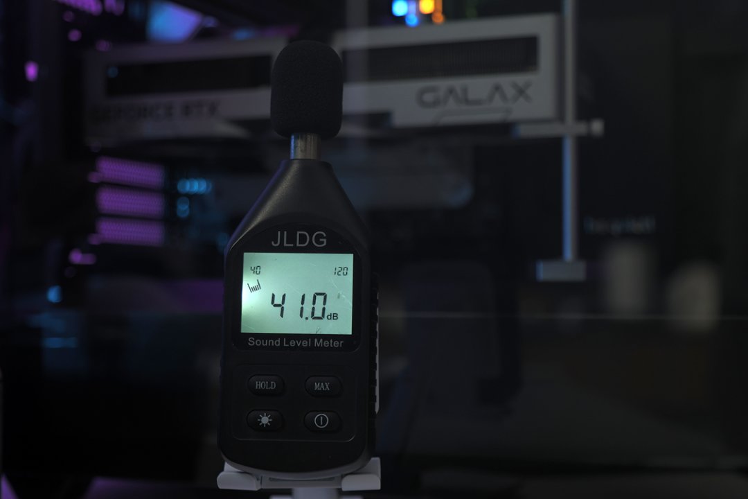 盖上机箱侧板时,机箱附近噪音为41分贝左右;