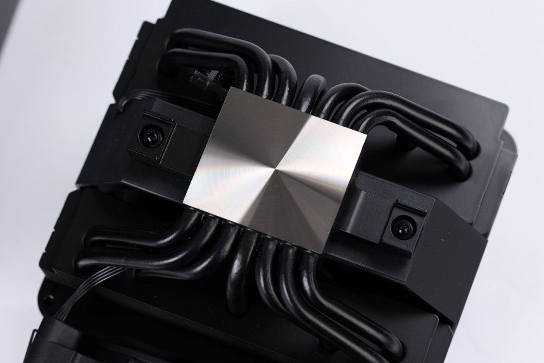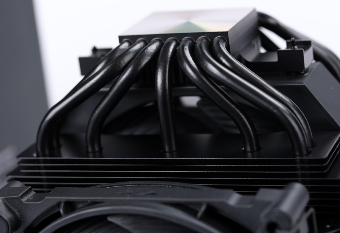 7根6mm高导热全铜热管,在逆重力热管技术的加持下,可以有效避免风冷因安装方向的不同,而导致风冷的散热性能受到影响。同时,热管以中心对称的排布方式,均匀的覆盖到了整个散热器底座,搭配上散热器底部的大面积精雕微凸铜底,可以让热管更快的将热量传导出去;