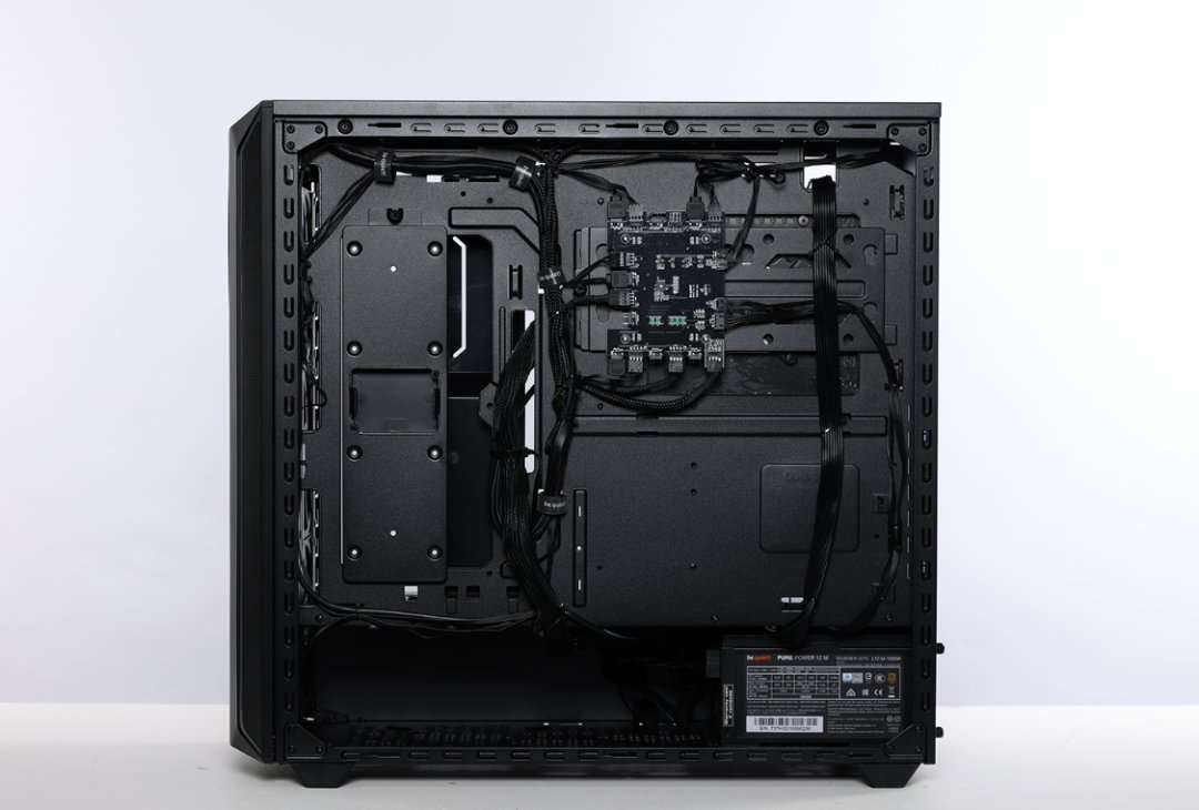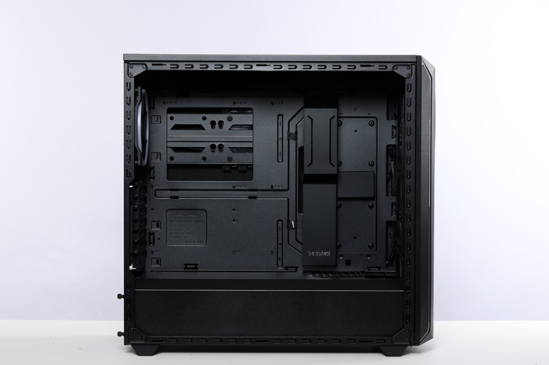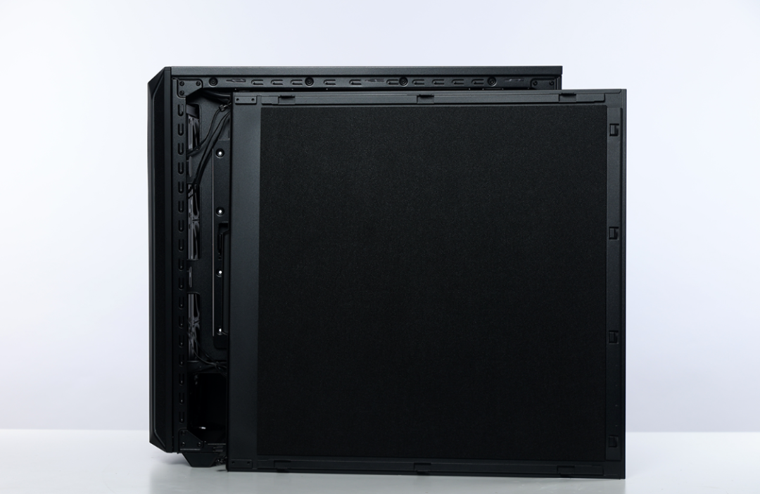 机箱右侧板是一整块金属背板,德系静音品牌的祖传吸音棉也继续保留了下来。