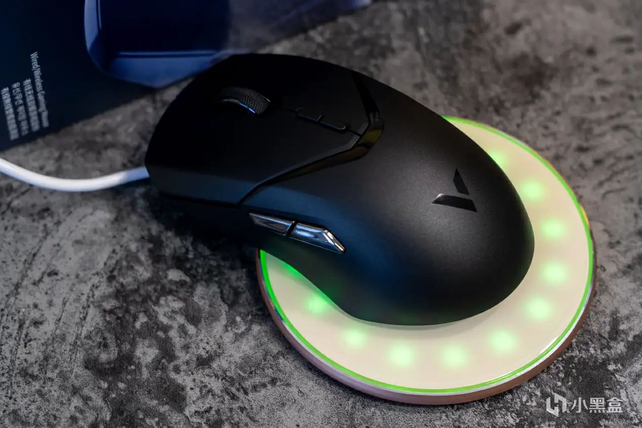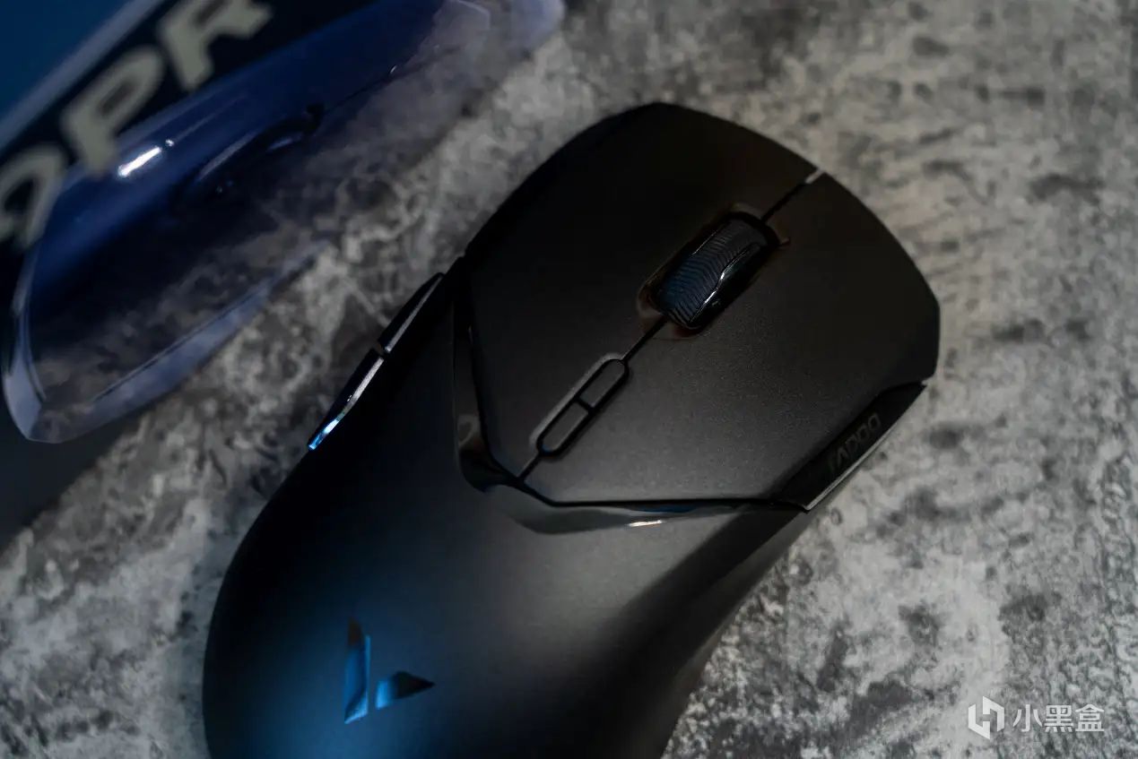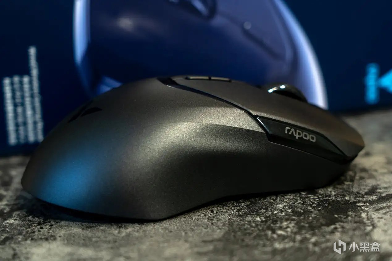 唯一不同的是,雷柏VT9PRO mini在右键与侧裙过渡的部分加入了品牌LOGO,这也使得雷柏VT9PRO mini看起来有了自己的个性。不过笔者上手之后发现,这个LOGO区域存在的主要目的很可能并不是为了在外观上打造出与雷柏VT9PRO的区别,而是主要考虑到了无名指部分的握持手感,因为这个是革新包边侧翼,完美收纳不夹手。