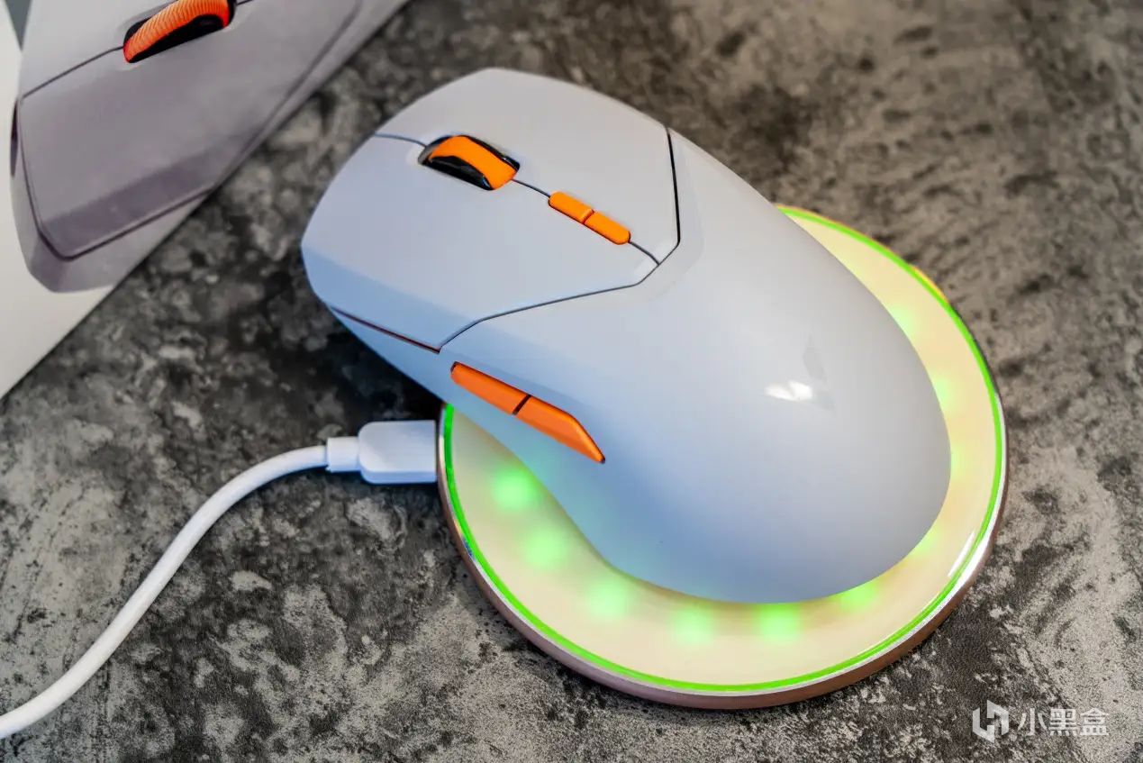 虽然雷柏VT9PRO自身不带无线充电功能,但却可以通过将接收器收纳仓盖子替换成雷柏P3无线充电模块的方式实现无线充电,只要是支持Qi协议的无线充电器都能用。之所以没有内置无线充电功能,一方面会提升鼠标的成本,另一方面也会略微提升鼠标的重量。如今这种设计反而能够满足更多玩家的需求,入手门槛还比较低。续航方面的表现也挺给力,官方测试续航最高可以达到160小时,当然如果使用高回报率模式的话续航肯定会下降一些,但根据笔者的实际体验来看,一周一充完全足够。