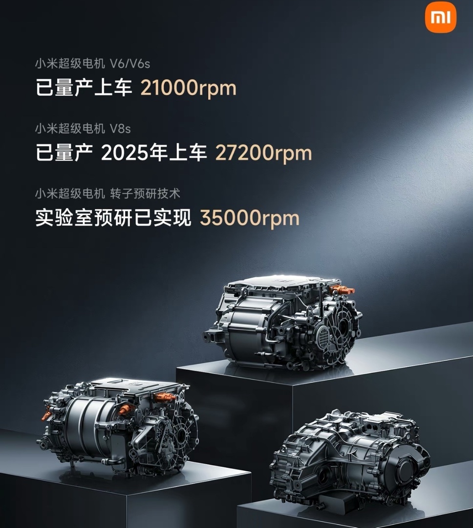 更令人惊叹的是,小米在实验室预研中已经实现了35000rpm的转速,采用碳纤维激光缠绕工艺,展现出对未来电动动力技术的深度布局和前瞻视野。