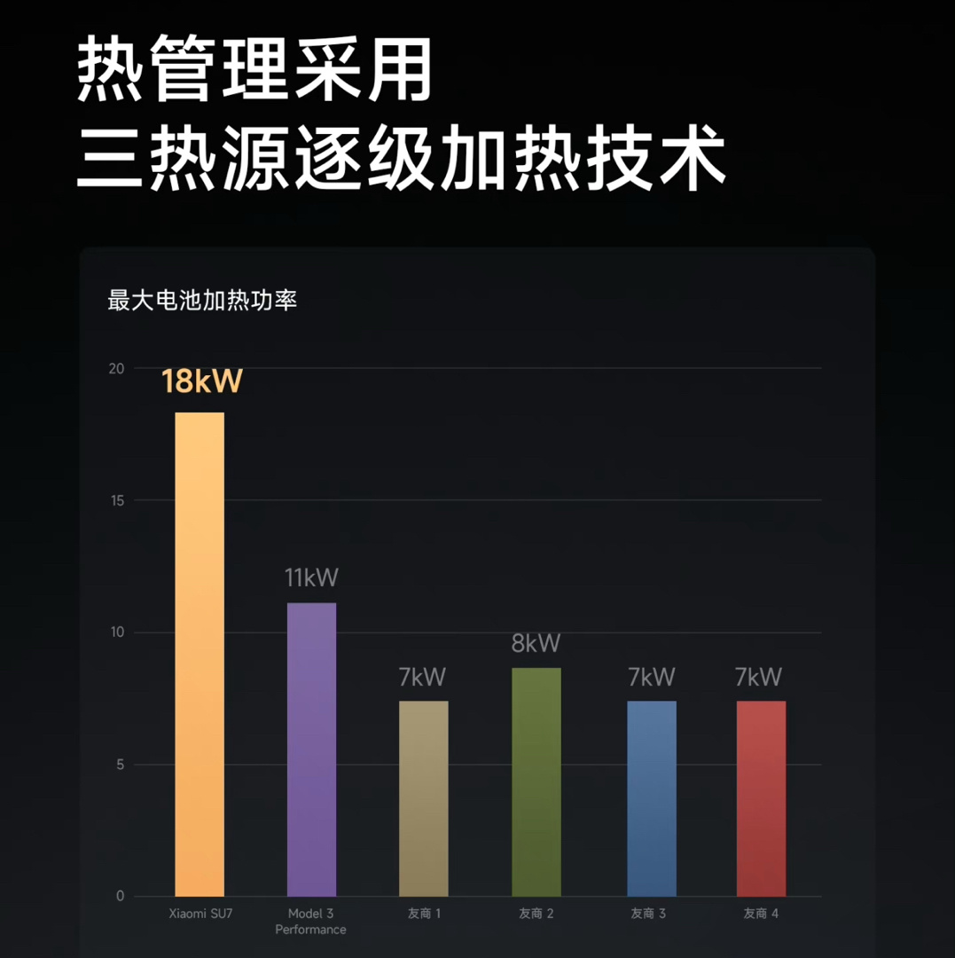 小米高效双模热泵采用了行业首创的电芯倒置技术,最大程度保证了乘员舱的安全。三热源逐级加热技术提升了热管理效率,实现了同级更高的低温续航保持率、更快的低温空调升温速度以及更快的低温充电速度。