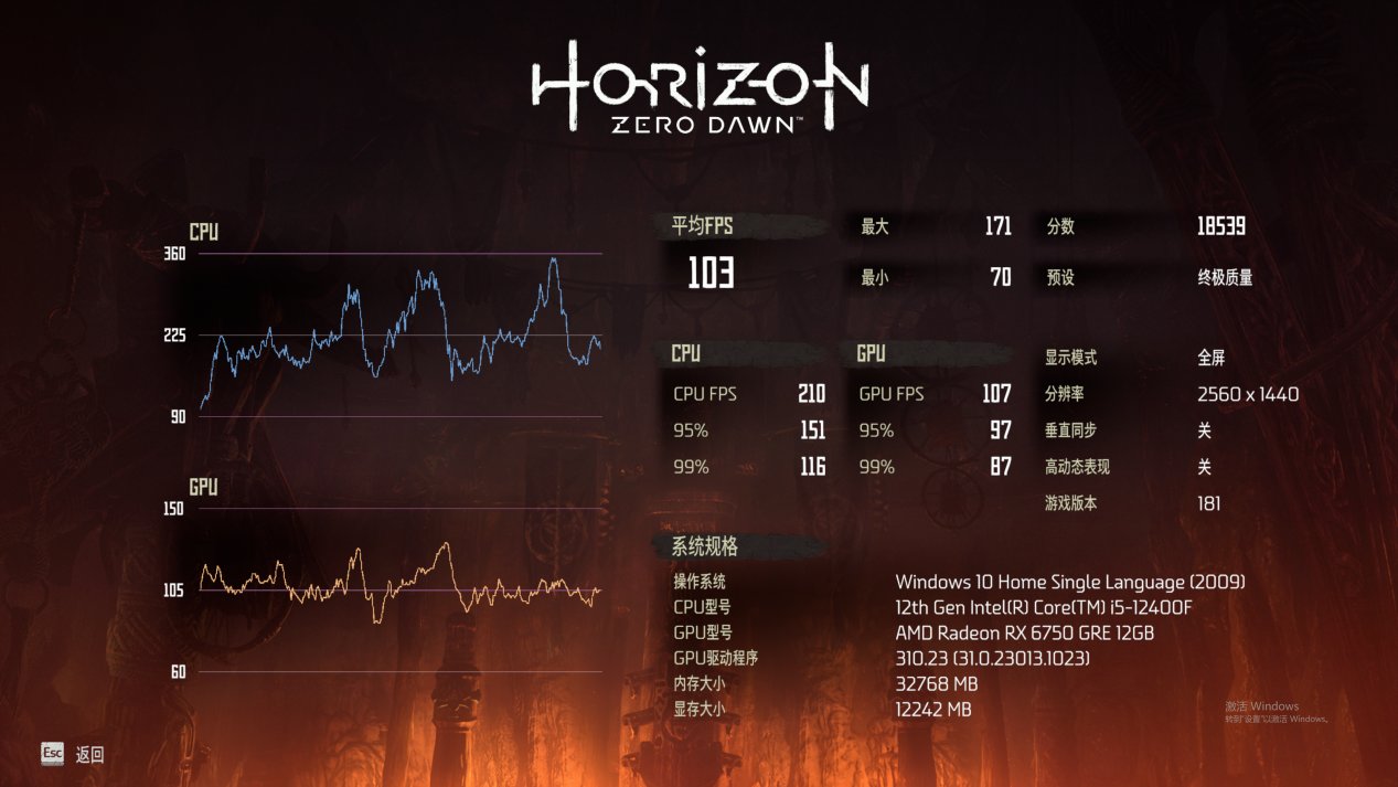 在地平线:零之曙光中,1080P和2K分辨率帧数均过百,终极质量流畅运行无压力。