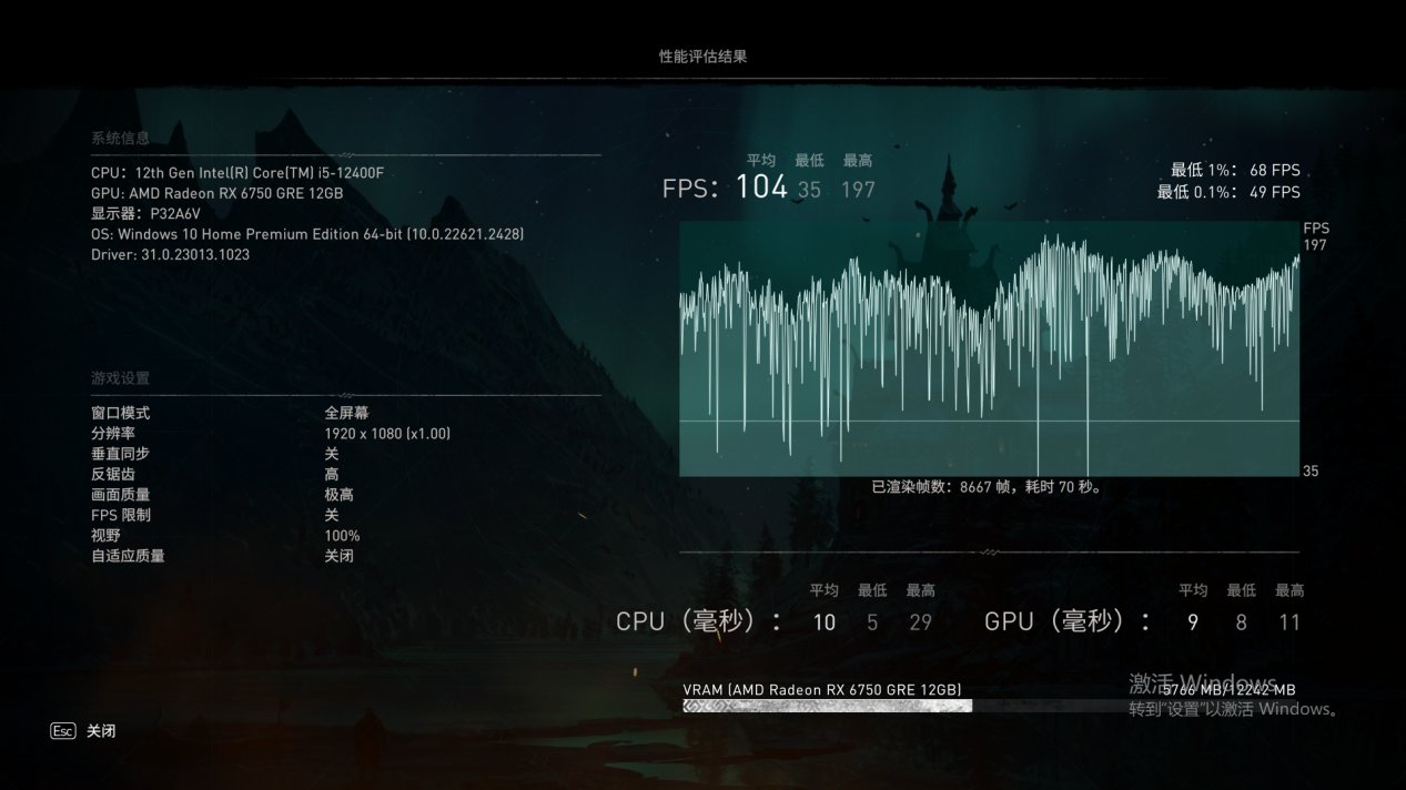 从性能来说,RX 6750GRE 12GB在2K分辨率下,3A游戏都能高画质60帧以上流畅运行,是一张标准的2K游戏卡。