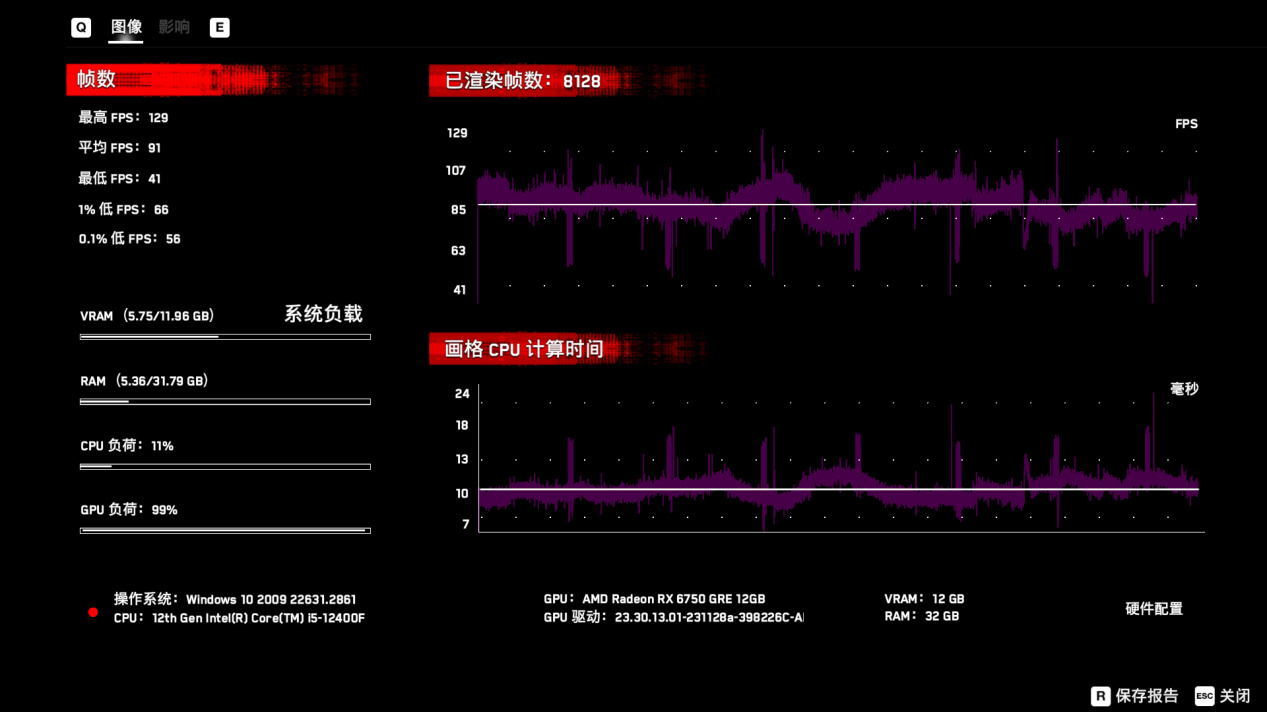 这里对比了一下同价位竞品4060的游戏表现,不过这里需要提前说明的是我当时测试4060时CPU用的是13700KF,而6750GRE这次用的是12400F,即使如此6750GRE的表现依旧是要比4060强不少。