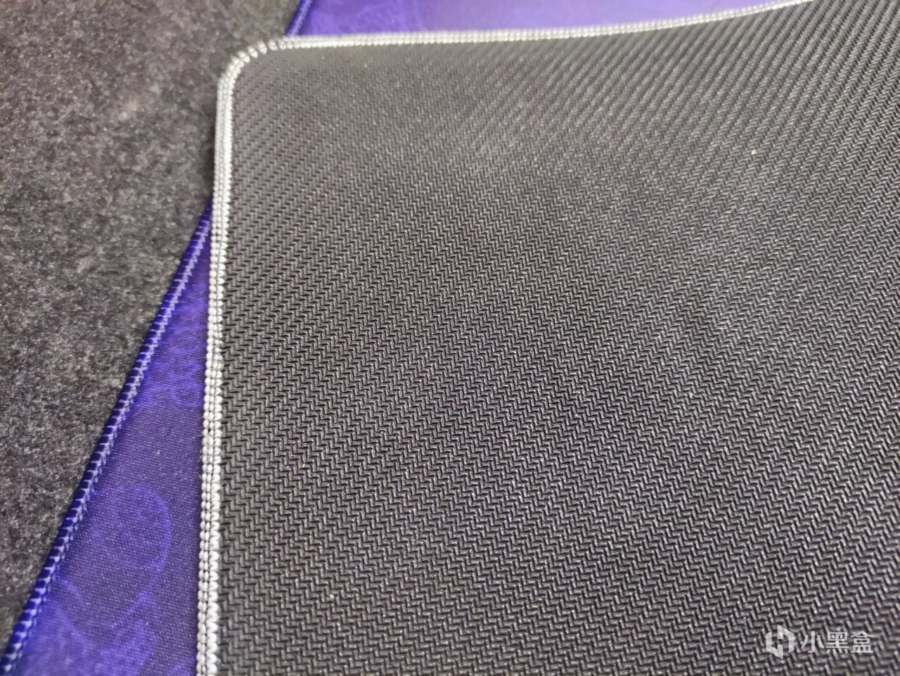 正面的平直纤维可以看到其密度给的比较大,整体顺滑程度中等偏上,同时因为鼠标垫的中间层和较厚的厚度有一定的下陷弹性空间。